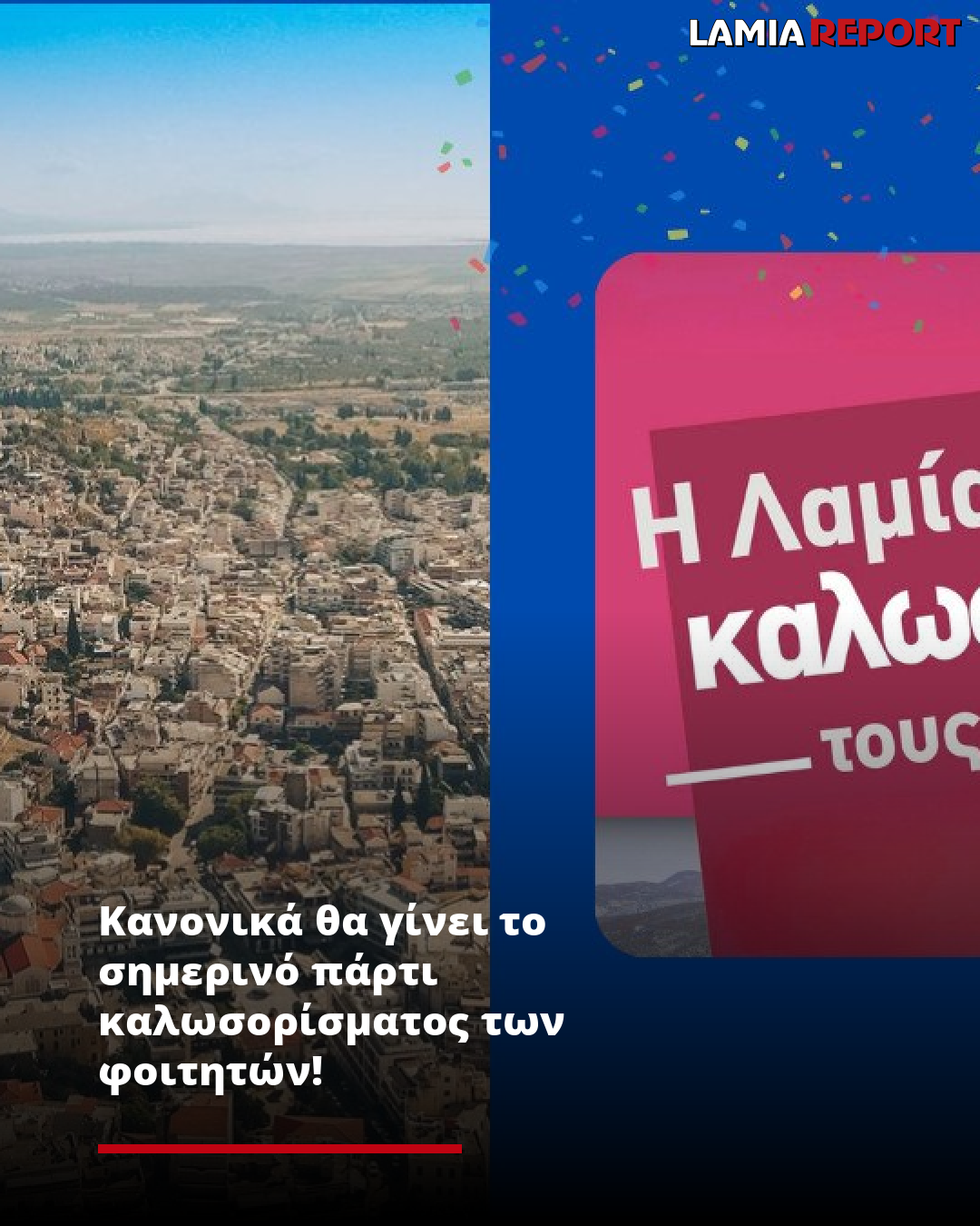 Το Επιμελητήριο Φθιώτιδας, σε συνεργασία με τον Εμπορικό Σύλλογο Λαμίας, το Σύλλογο Εστίασης Λαμίας, με την υποστήριξη της Περιφέρειας Στερεάς Ελλάδας, του Δήμου Λαμιέων και των τμημάτων του Πανεπιστημίου Θεσσαλίας με έδρα τη Λαμία, διοργανώνουν ένα μεγάλο πάρτι καλωσορίσματος για όλους τους φοιτητές!