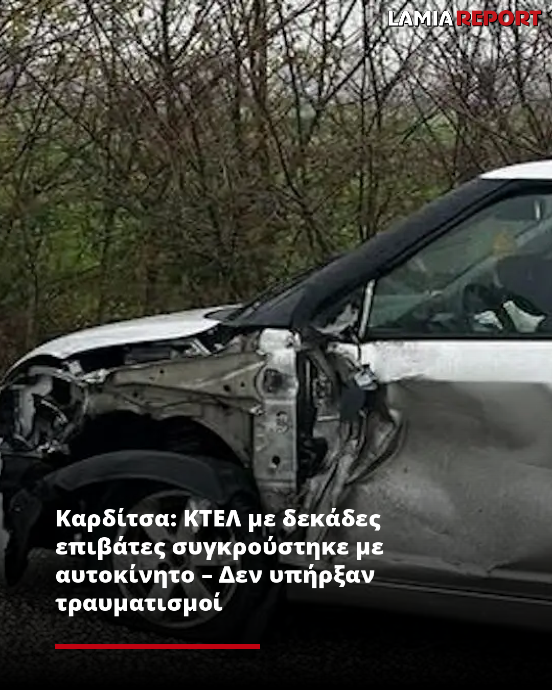 Σύμφωνα με πληροφορίες του kozan.gr, από το τροχαίο στην Καρδίτσα δεν προκλήθηκε τραυματισμός, ενώ όλοι οι επιβάτες του λεωφορείου είναι καλά στην υγεία τους.