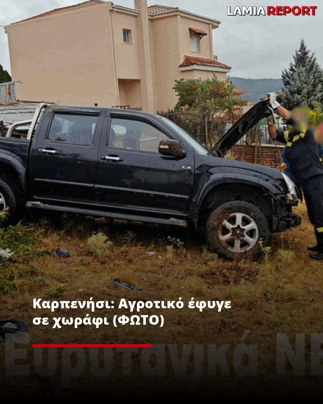 Τροχαίο ατύχημα σημειώθηκε λίγο μετά τις 15:30 το μεσημέρι της Κυριακής 28 Σεπτεμβρίου, στο Καρπενήσι, στην οδό Χαριλάου Τρικούπη, στο ύψος του ΚΤΕΛ. Μαύρο αγροτικό αυτοκίνητο που κινούνταν ανοδικά, κάτω από αδιευκρίνιστες μέχρι στιγμής συνθήκες, ξέφυγε από την πορεία του και κατέληξε μέσα σε ιδιόκτητο οικόπεδο.