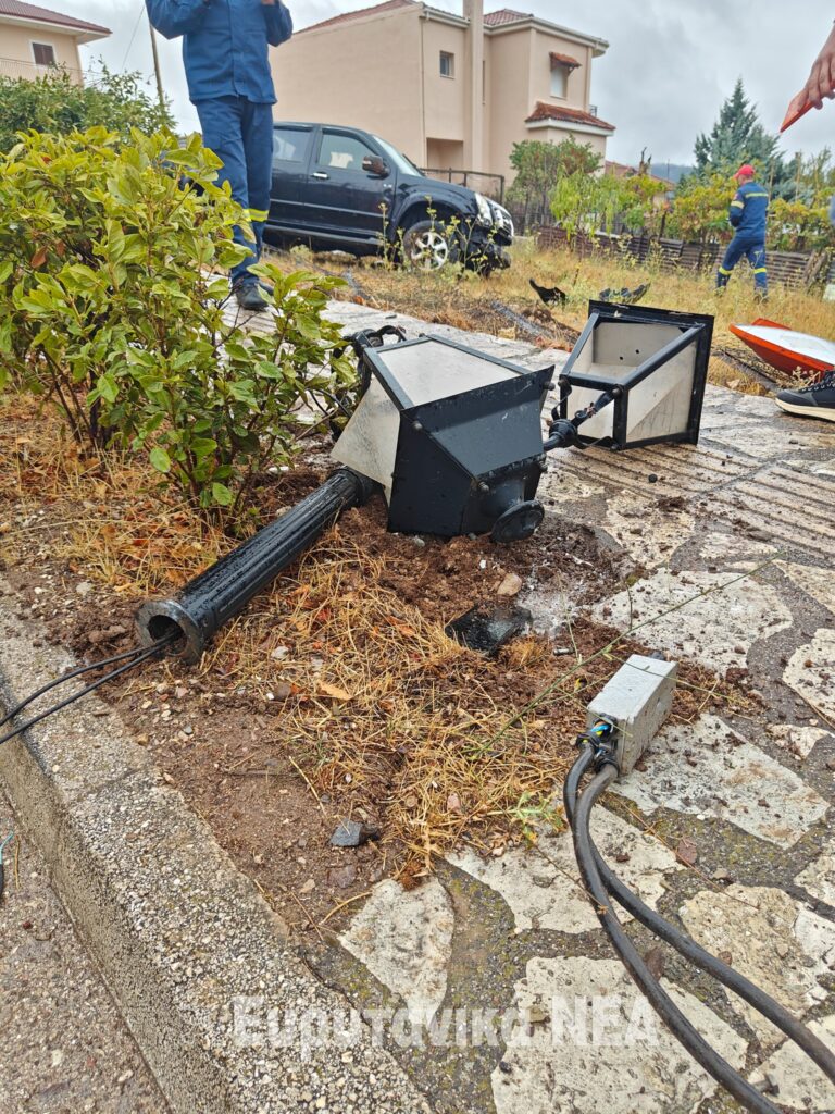 Ευτυχώς, εκείνη τη στιγμή δεν περνούσε κάποιος άνθρωπος από το πεζοδρόμιο, κάτι που θα μπορούσε να έχει οδηγήσει σε πολύ πιο σοβαρές συνέπειες. Στο διάβα του, το ΙΧ αυτοκίνητο παρέσυρε κολώνα δημοτικού φωτισμού, έσπασε δέντρο και διέλυσε τον φράχτη του οικοπέδου.