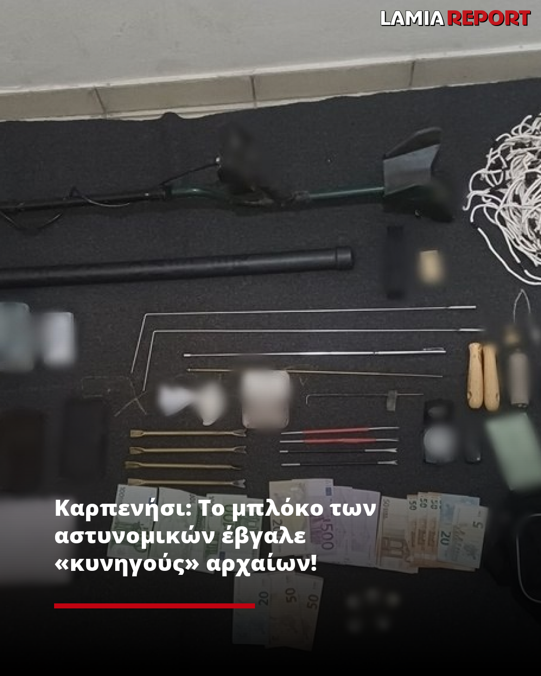 Συνελήφθησαν, τη Μεγάλη Τρίτη (15-04-2025) το πρωί στην ευρύτερη περιοχή του Καρπενησίου Ευρυτανίας, από αστυνομικούς της Β’ Ο.Π.Κ.Ε. του Τμήματος Δίωξης και Εξιχνίασης Εγκλημάτων Καρπενησίου, τέσσερις (4) Έλληνες, για παράβαση της νομοθεσίας περί προστασίας αρχαιοτήτων και εν γένει της πολιτιστικής κληρονομιάς, κατά συναυτουργία.