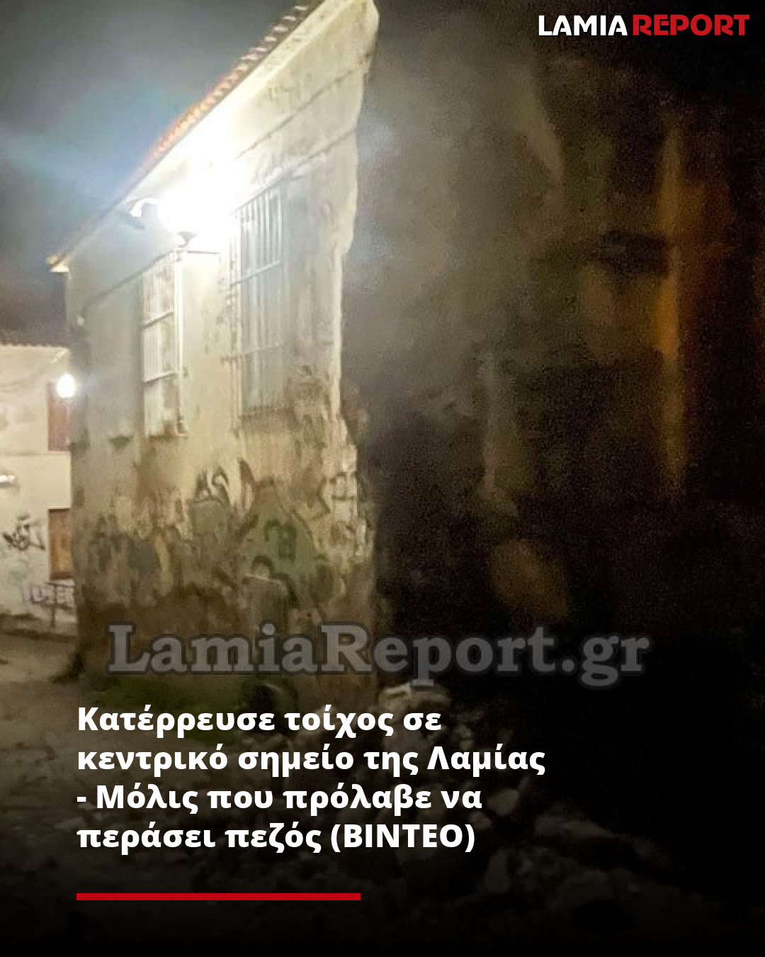 Κατέρρευσε τοίχος σε κεντρικό σημείο της Λαμίας - Μόλις που πρόλαβε να περάσει πεζός (ΒΙΝΤΕΟ)