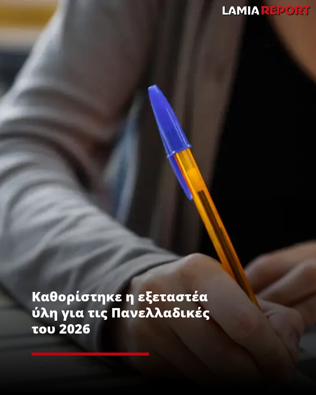 Καθορίστηκε από το Υπουργείο Παιδείας, Θρησκευμάτων και Αθλητισμού, η εξεταστέα ύλη για το έτος 2026 για τα μαθήματα που εξετάζονται πανελλαδικά για την εισαγωγή στην Τριτοβάθμια Εκπαίδευση αποφοίτων Γ’ τάξης Ημερήσιου Γενικού Λυκείου και Γ’ τάξης Εσπερινού Γενικού Λυκείου.