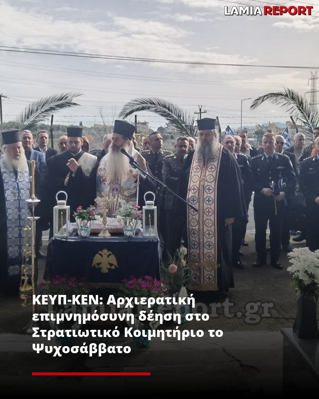 Αρχιερατικό Μνημόσυνο υπέρ αναπαύσεως των ψυχών των εν πολέμω & εν ειρήνη πεσόντων υπέρ πίστεως και πατρίδος αξιωματικών και οπλιτών, τέλεσε ο Σεβασμιώτατος Μητροπολίτης Φθιώτιδος κ. Συμεών, το πρωί του Σαββάτου 14 Φεβρουαρίου 2026 (Α’ Ψυχοσάββατο) στο Στρατιωτικό Κοιμητήριο Λαμίας (Ξηριώτισσα), κατόπιν πρόσκλησης του νέου Διοικητή του ΚΕΥΠ-ΚΕΝ Συνταγματάρχη Δήμου Μπαρτσιώκα.