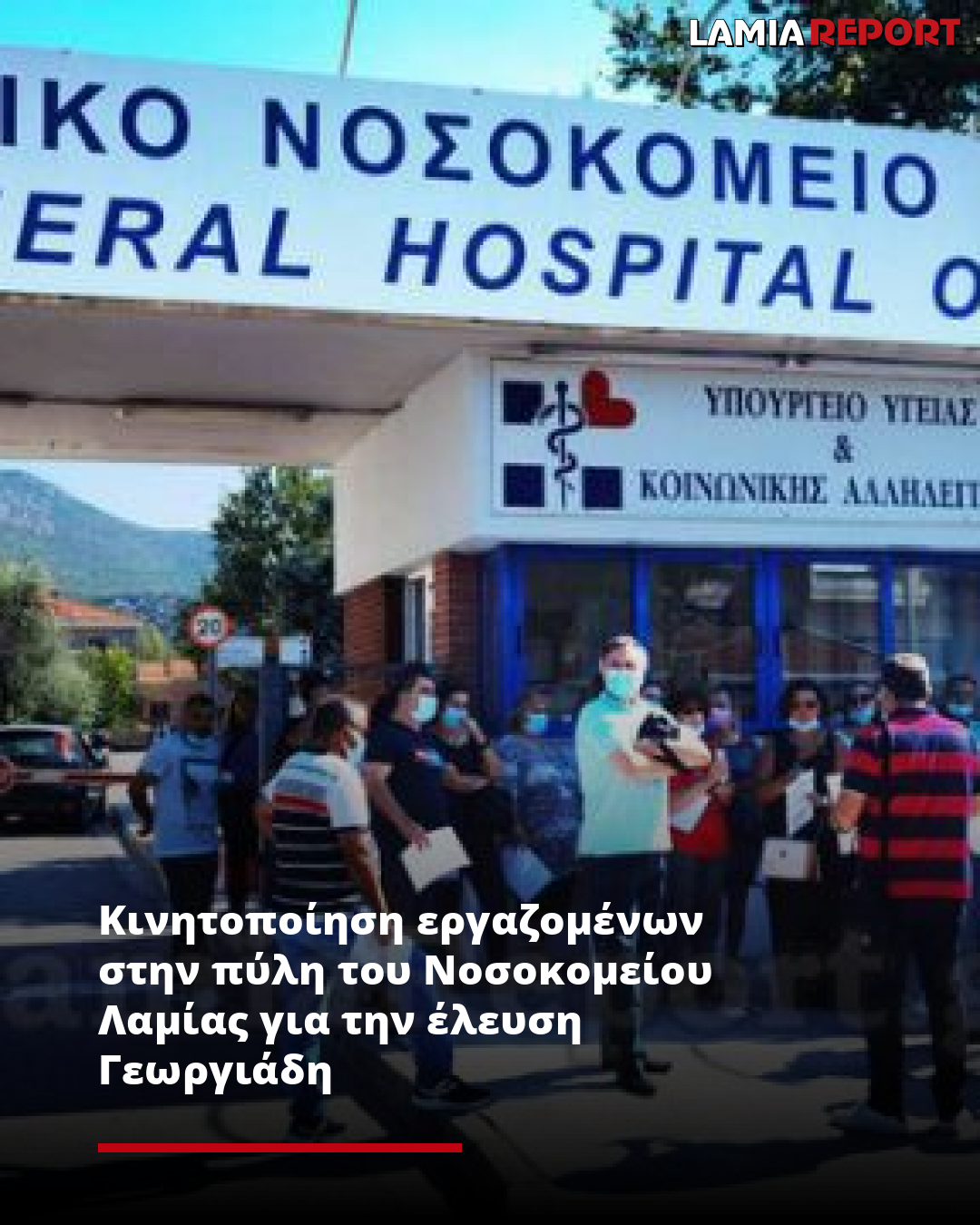 Κινητοποίηση εργαζομένων στην πύλη του Νοσοκομείου Λαμίας για την έλευση Γεωργιάδη