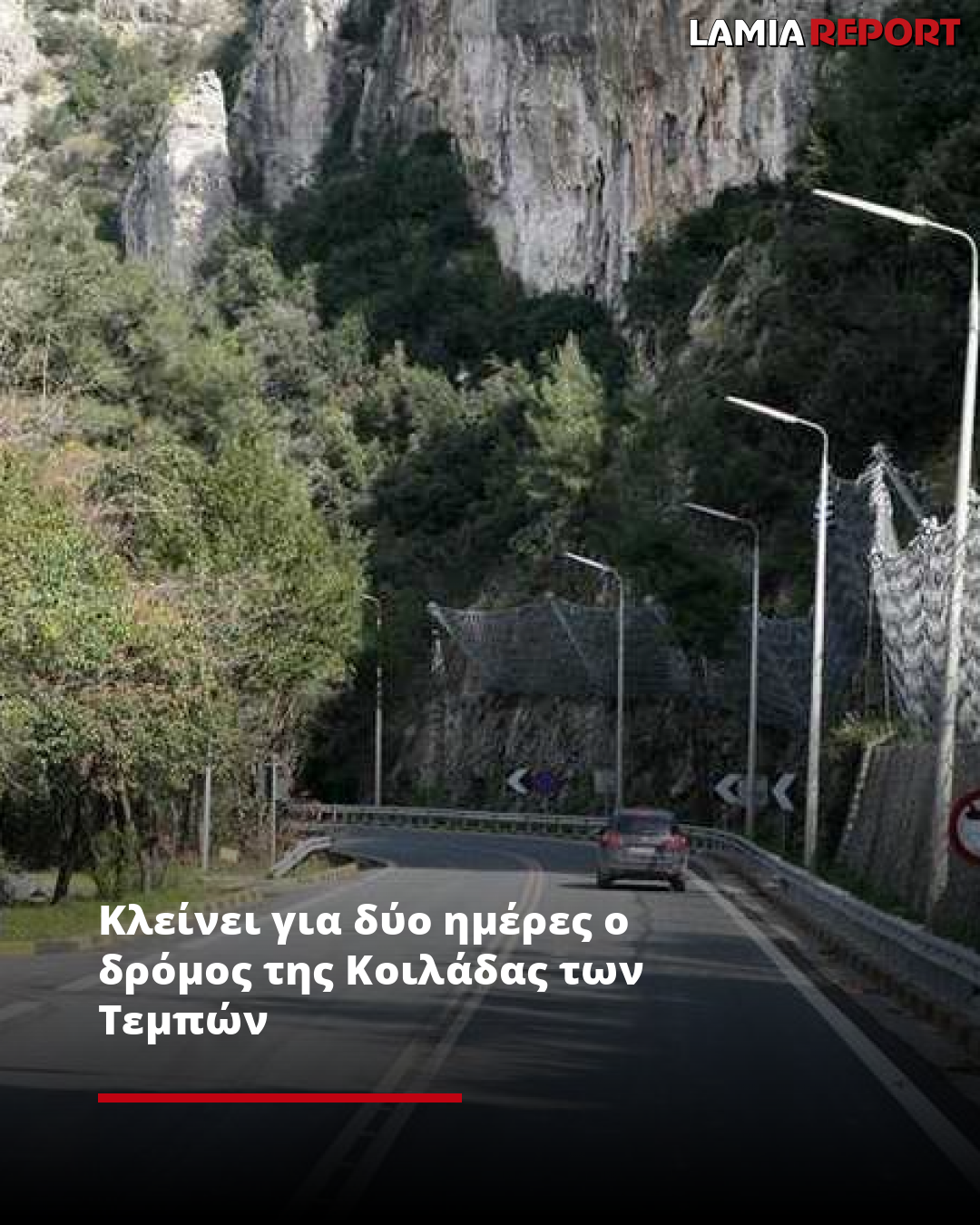 Θα γίνει ολικός αποκλεισμός της κυκλοφορίας όλων των οχημάτων και στις δύο κατευθύνσεις στην Κοιλάδα των Τεμπών (τμήμα της Παλαιάς Εθνικής Οδού Ευαγγελισμού – Λεπτοκαρυάς), από τον κόμβο Αμπελακίων έως τον κόμβο Ομολίου, την Τρίτη 21 Οκτωβρίου 2025 και την Τετάρτη 22 Οκτωβρίου 2025 κατά τις ώρες από 07:00 έως 19:00.