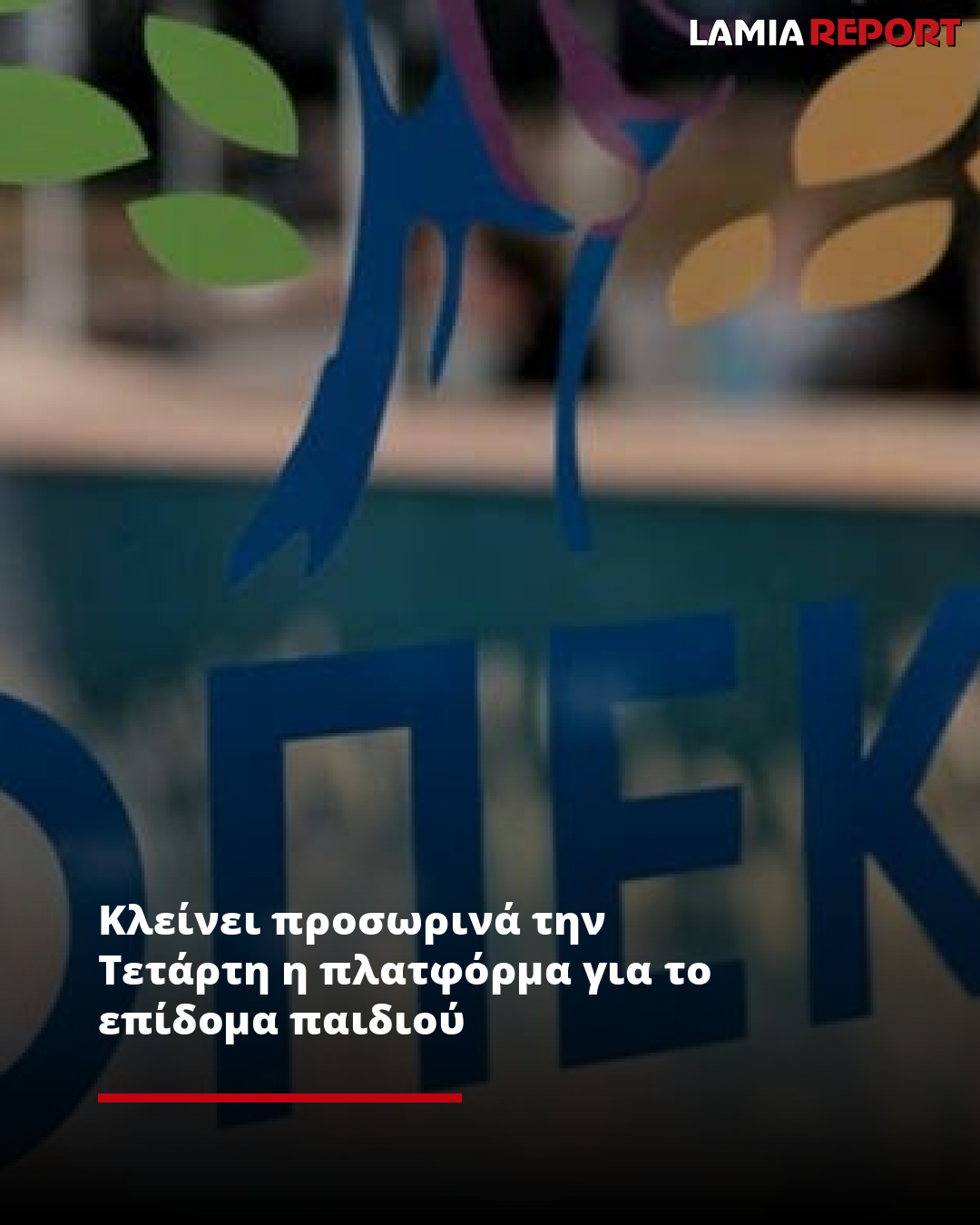 Το Υπουργείο Κοινωνικής Συνοχής και Οικογένειας, με τον εποπτευόμενο Οργανισμό Επιδομάτων και Κοινωνικής Αλληλεγγύης (ΟΠΕΚΑ), ενημερώνουν ότι, η ηλεκτρονική πλατφόρμα Α21 – Επίδομα Παιδιού, κλείνει προσωρινά, την Τετάρτη 3 Δεκεμβρίου στις 18.00.