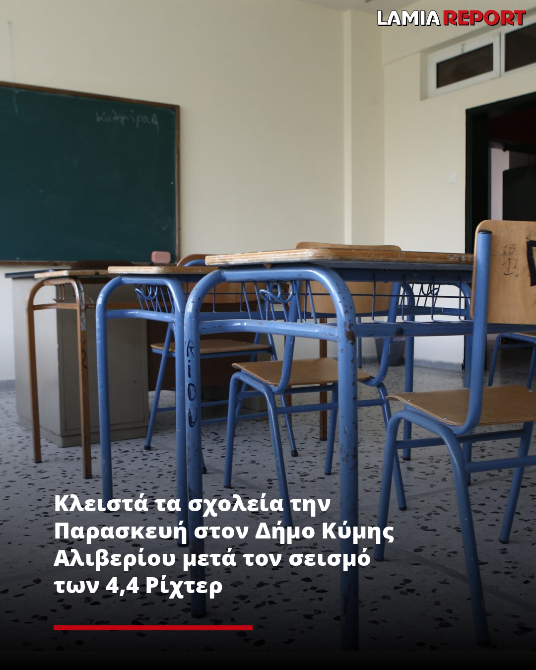 Κλειστά τα σχολεία την Παρασκευή στον Δήμο Κύμης Αλιβερίου μετά τον σεισμό των 4,4 Ρίχτερ