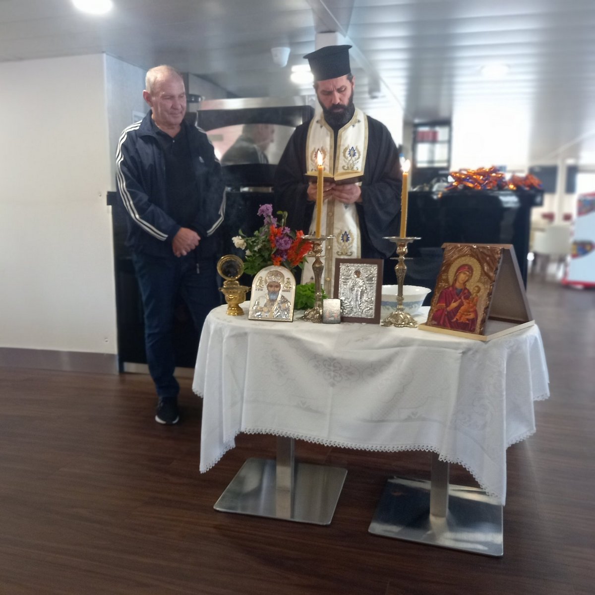 Πριν την έναρξη των δρομολογίων του πραγματοποιήθηκε η τελετή αγιασμού παρουσία των ανθρώπων του πλοίου και της εταιρίας καθώς και των τοπικών αρχών.