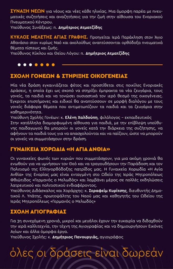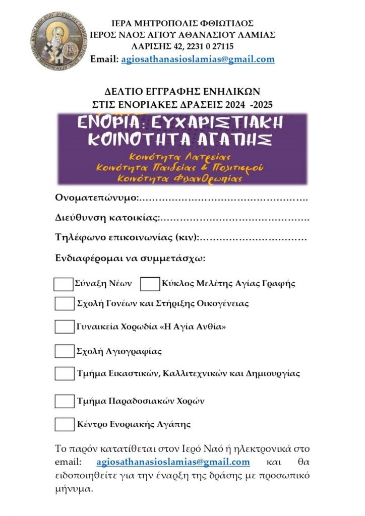 Ξεκινούν οι Ενοριακές Δράσεις του Ι.Ν. Αγίου Αθανασίου στα Γαλανέικα Λαμίας