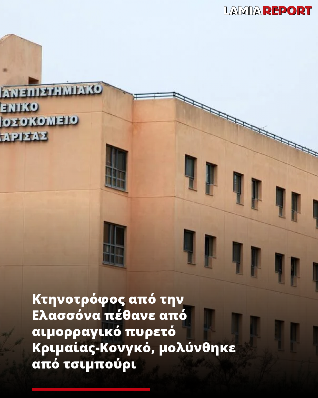 Ο ηλικιωμένος νοσηλευόταν στο Πανεπιστημιακό Νοσοκομείο της Λάρισας με βαριά επιδεινούμενη κλινική εικόνα και τελικά έχασε τη ζωή του. Μάλιστα, υπό παρακολούθηση για την πιθανότητα να έχουν μολυνθεί βρίσκονται, σύμφωνα με πληροφορίες του protothema.gr, μία γιατρός που φρόντιζε τον ασθενή, καθώς και άτομα από το περιβάλλον του.