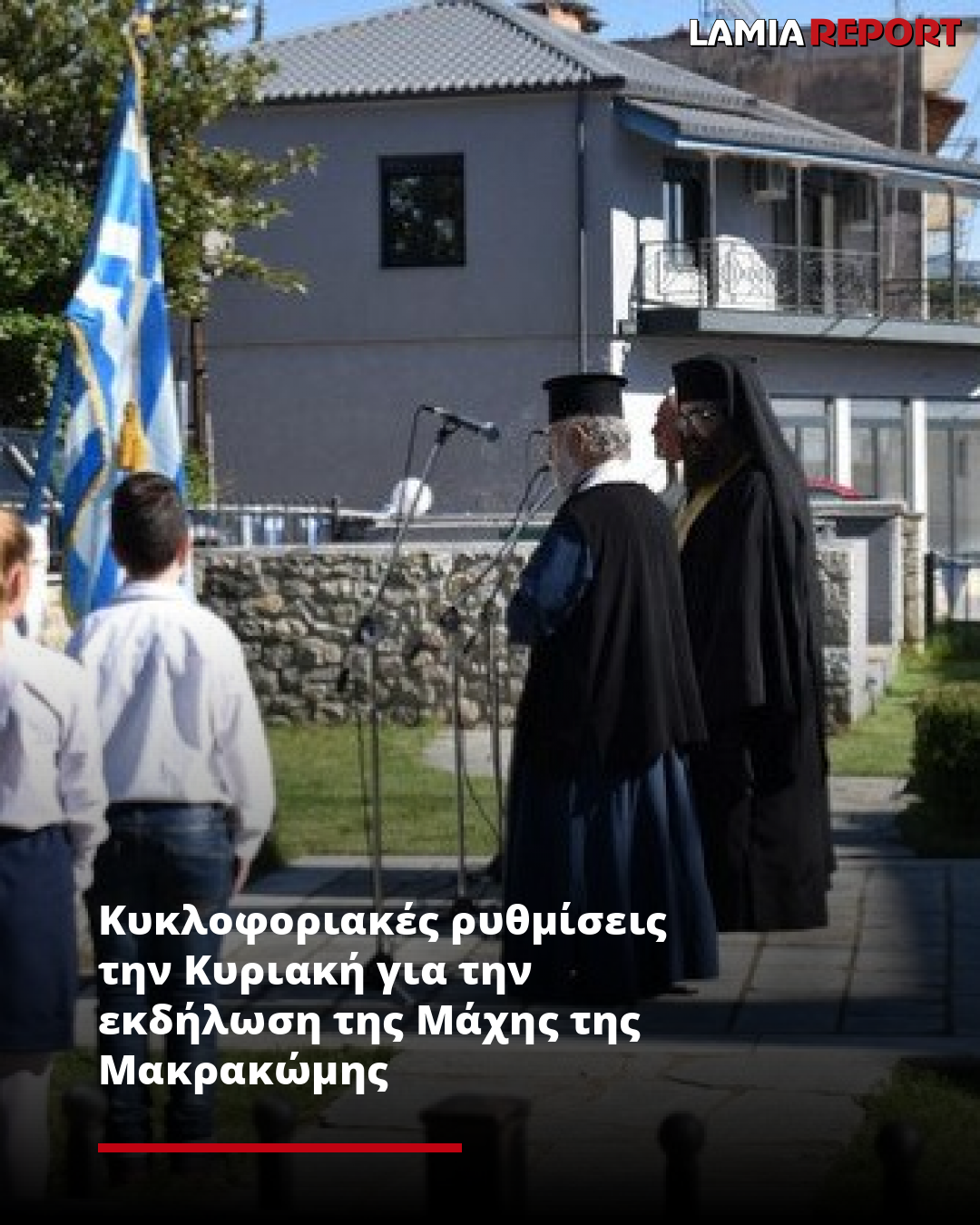 Κυκλοφοριακές ρυθμίσεις ανακοίνωσε η Διεύθυνση Αστυνομίας Φθιώτιδας για την απρόσκοπτη τέλεση της επετειακής εκδήλωσης της «ΜΑΧΗΣ ΤΗΣ ΜΑΚΡΑΚΩΜΗΣ» την Κυριακή 06-10-2024.