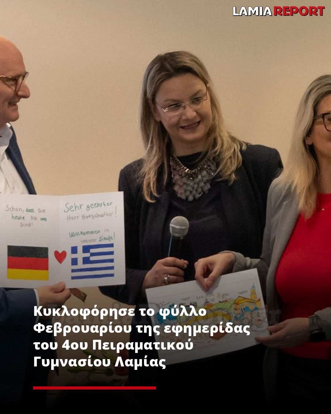 «Κυκλοφόρησε» για το Φεβρουάριο 2025 το φ.32 της εφημερίδας του 4ου Πειραματικού Γυμνασίου Λαμίας που βρίσκεται ήδη στον 5ο χρόνο ζωής της.