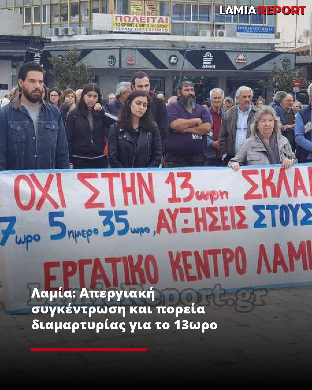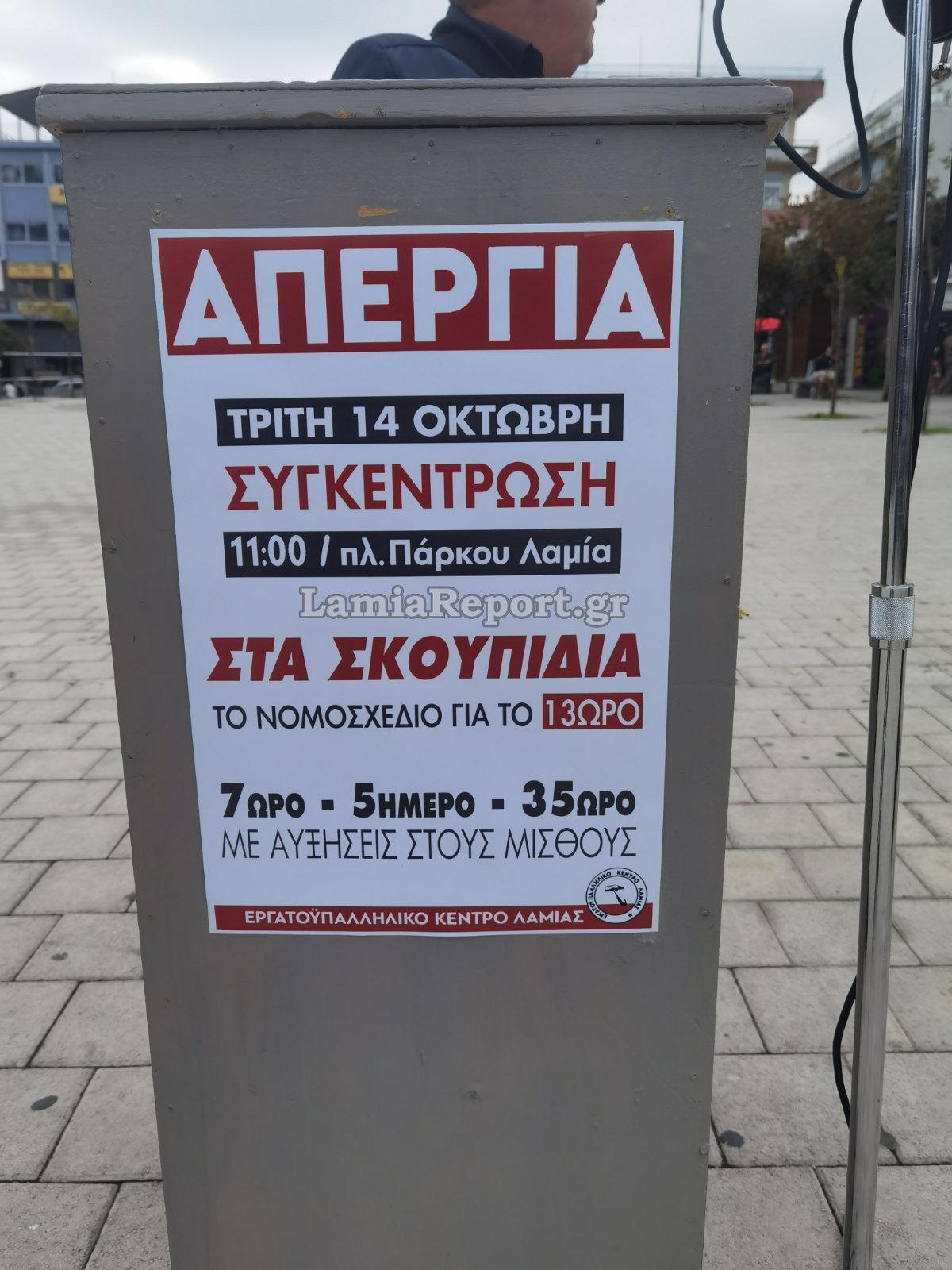 Με συγκέντρωση και πορεία διαμαρτυρίας στο κέντρο της πόλης, το Εργατικό Κέντρο Λαμίας συμμετείχε στην πανελλαδική απεργία της Τρίτης 14 Οκτωβρίου 2025, ενώνοντας τη φωνή του με χιλιάδες εργαζομένους, μισθωτούς, αλλά και αγρότες, άνεργους και συνταξιούχους κατά της 13ωρης εργασίας.