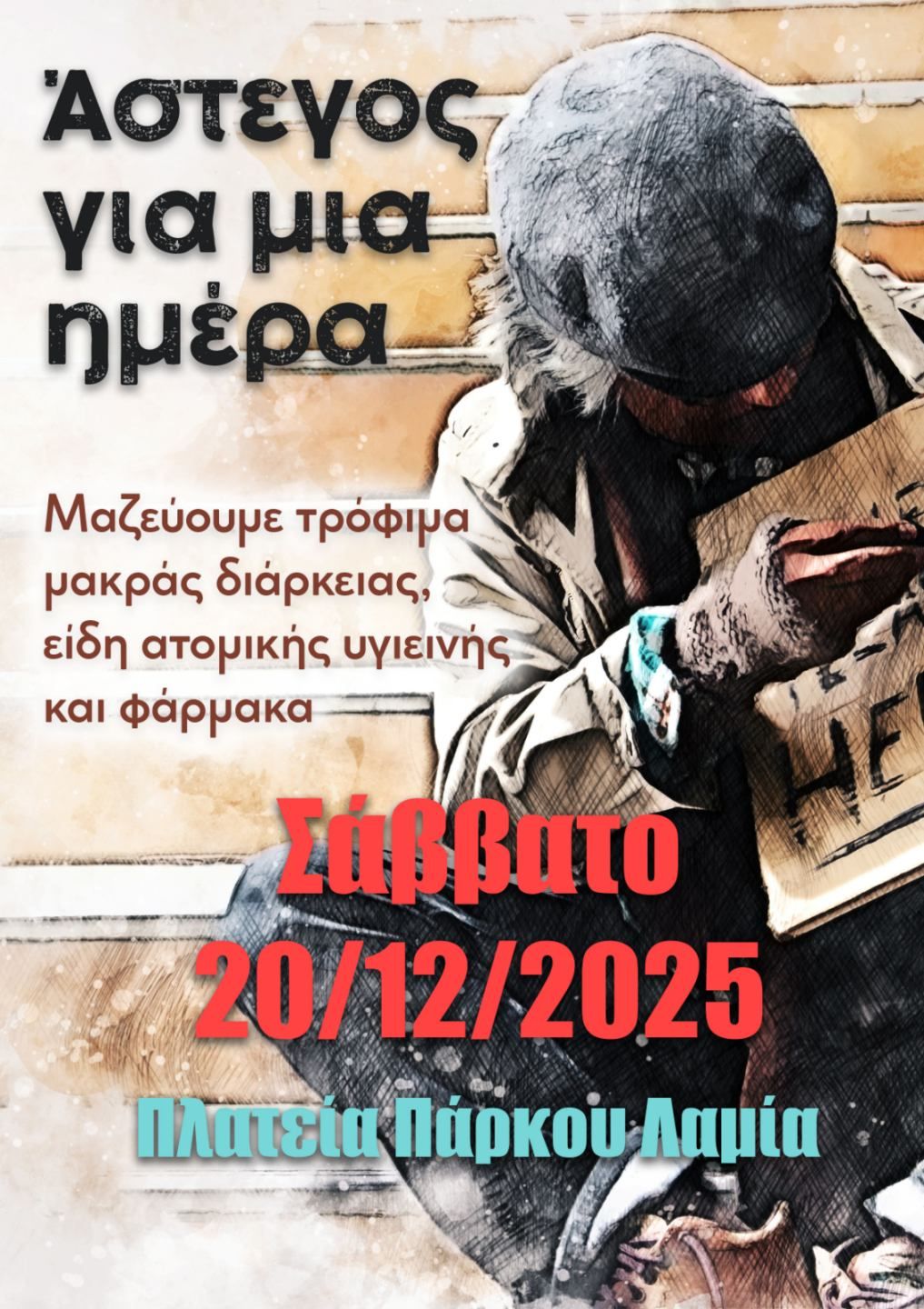 Λαμία - «Άστεγος για μια ημέρα»: Δείχνουμε την αλληλεγγύη μας μαζεύοντας είδη πρώτης ανάγκης