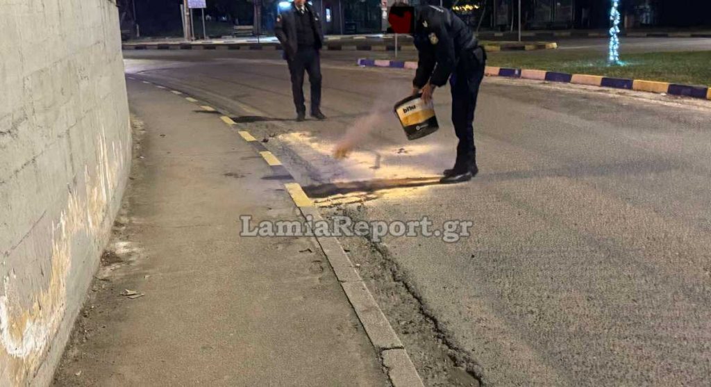 Αστυνομικοί της Τροχαίας Λαμίας φρόντισαν να σφαλίσουν τη μηχανή και να ρίξουν υλικό στο σημείο όπου έπεσαν λάδια από τη μηχανή προς αποφυγή άλλου ατυχήματος.