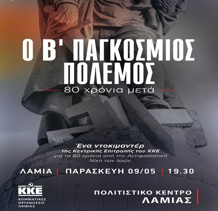 Οι κομματικές οργανώσεις Λαμίας Φθιώτιδας του ΚΚΕ πραγματοποιούν την προβολή του πολυαναμενόμενου νέου ντοκιμαντέρ του Κόμματος για τα 80 χρόνια από το τέλος του Β΄ παγκόσμιου πολέμου.