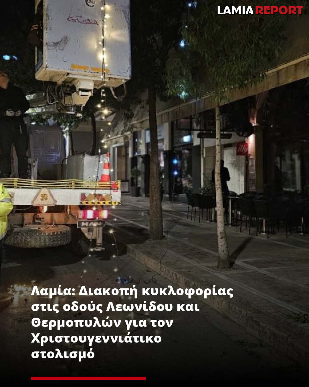 Λαμία: Διακοπή κυκλοφορίας στις οδούς Λεωνίδου και Θερμοπυλών για τον Χριστουγεννιάτικο στολισμό