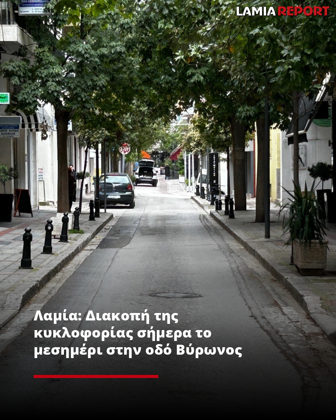 Η Διεύθυνση Υποδομών και Τεχνικών έργων του Δήμου Λαμιέων ενημερώνει ότι την Παρασκευή 11 Απριλίου από τις 12:00 έως τις 17:30 θα γίνει διακοπή κυκλοφορίας στην οδό Βύρωνος, μεταξύ των οδών Χατζοπούλου και Καραγιαννοπούλου, για τη μεταφορά εξειδικευμένου ιατρικού εξοπλισμού που απαιτεί ιδιαίτερες συνθήκες εκφόρτωσης.
