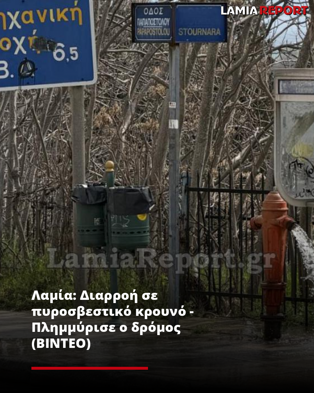 Λαμία: Διαρροή σε πυροσβεστικό κρουνό - Πλημμύρισε ο δρόμος (ΒΙΝΤΕΟ)