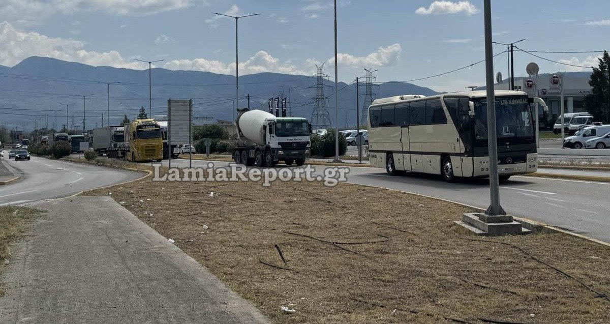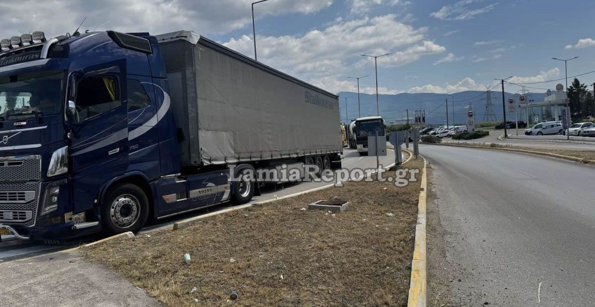Λαμία: Έκλεισε η εθνική οδός στην είσοδο της πόλης από νταλίκα που ακινητοποιήθηκε (ΒΙΝΤΕΟ-ΦΩΤΟ)