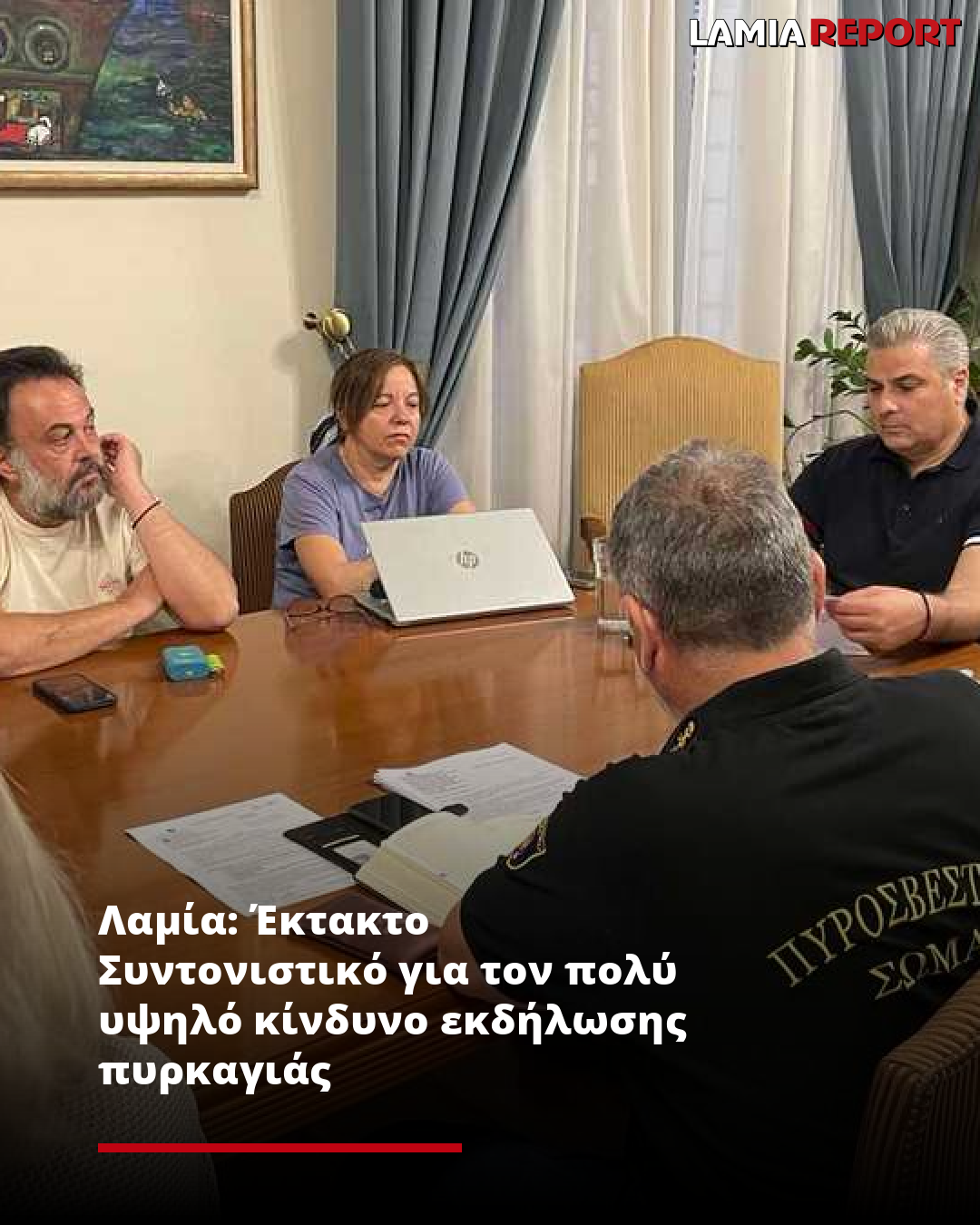 Πραγματοποιήθηκε, το Σάββατο 28 Ιουνίου 2025, έκτακτη συνεδρίαση του ΠΕ.Σ.Ο.Π.Π. της Π.Ε. Φθιώτιδας από τον Αντιπεριφερειάρχη Φθιώτιδας Ηλία Κ. Σανίδα, στο γραφείο του στην Λαμία, με αντικείμενο τον προγραμματισμό μέτρων και δράσεων λόγω του ΠΟΛΥ ΥΨΗΛΟΥ ΚΙΝΔΎΝΟΥ ΠΥΡΚΑΓΙΑΣ (κατηγορίας 4) στην Π.Ε. Φθιώτιδας, μετά από προτροπή του Επικεφαλής Διοίκησης Πυροσβεστικών Υπηρεσιών Ν. Φθιώτιδας Πύραρχου Χρήστου Πλουμάκη.