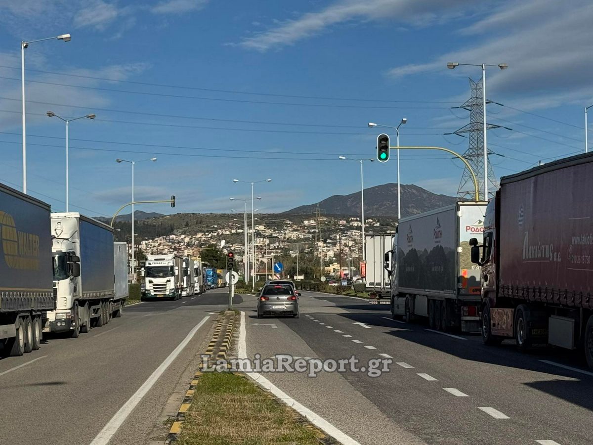 Εγκλωβισμένα σε πάρκινγκ εντός και γύρω από τη Λαμία, παραμένουν για πολλές ώρες εκατοντάδες φορτηγά οχήματα που δεν μπορούν να περάσουν το μπλόκο του Μπράλου.