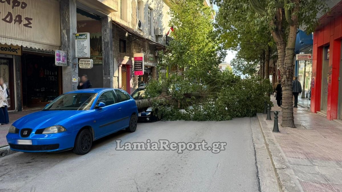 Λαμία: Έπεσε δέντρο πάνω σε αυτοκίνητα στο κέντρο της πόλης - Από τύχη δεν υπήρξε τραυματισμός (ΒΙΝΤΕΟ-ΦΩΤΟ)