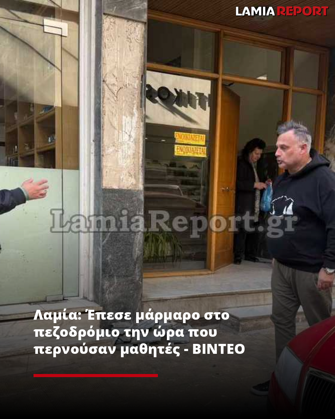 Ένα μεγάλο μάρμαρο αποκολλήθηκε από την είσοδο πολυκατοικίας στο κέντρο της Λαμίας στην οδό Αμαλίας με Καποδιστρίου, το μεσημέρι της Παρασκευής (21/11/25), την ώρα μάλιστα που σχολούσαν τα σχολεία και από το σημείο περνούσαν μαθητές του 2ου ΕΠΑΛ Λαμίας.