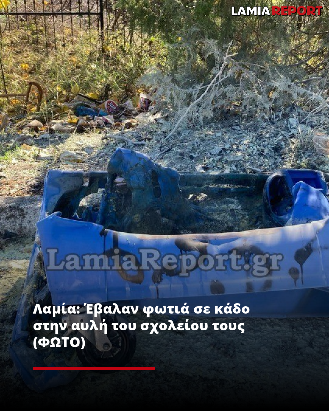 Λαμία: Έβαλαν φωτιά σε κάδο στην αυλή του σχολείου τους (ΦΩΤΟ)