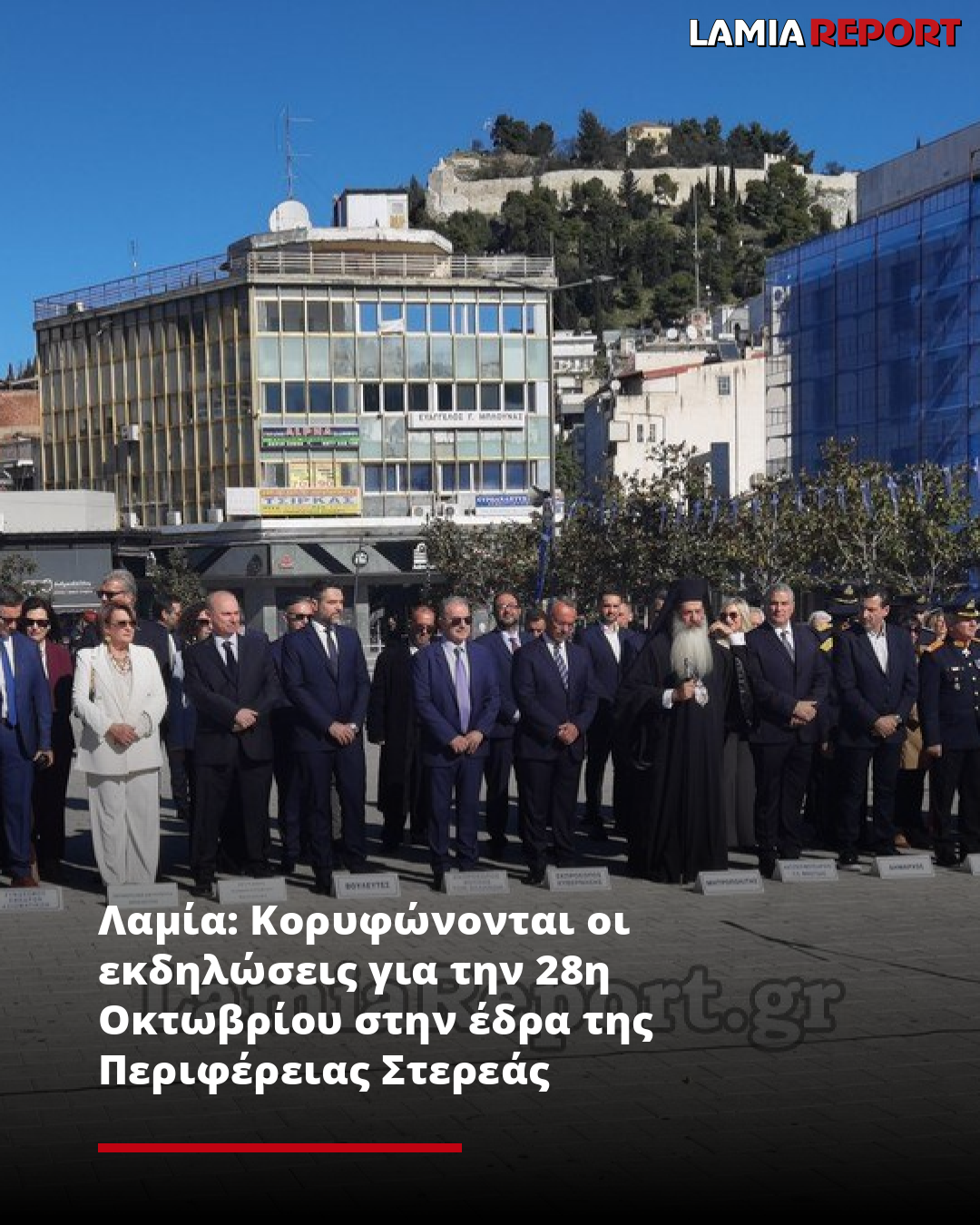 Με χαρμόσυνες κωδωνοκρουσίες όλων των Εκκλησιών της πόλης από νωρίς το πρωί και έπαρση της Σημαίας στο Περιφερειακό Κατάστημα με απόδοση τιμών από τιμητικό άγημα του Στρατού, ξεκίνησαν οι εκδηλώσεις στην Λαμία, για τον εορτασμό της 28ης Οκτωβρίου 1940, ανήμερα της μεγάλης εθνικής επετείου.
