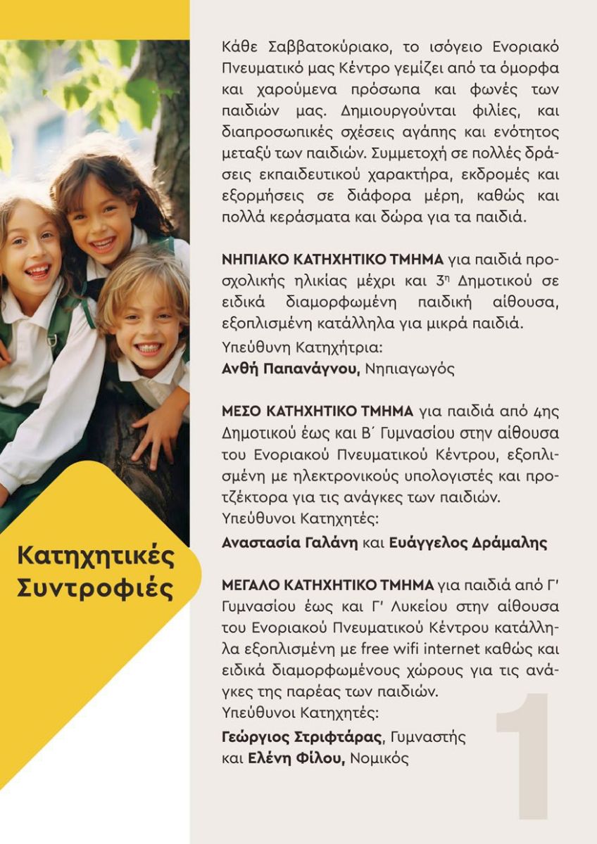 Υπεύθυνοι Κατηχητές: κ. Γεώργιος Στριφτάρας Γυμναστής και κ. Ελένη Φίλου, Νομικός