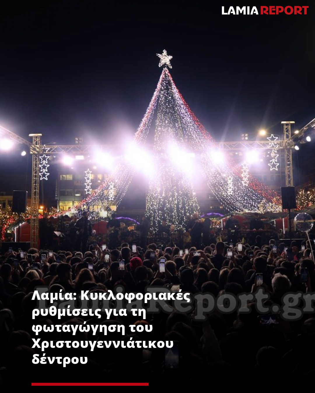 Η Διεύθυνση Υποδομών και Τεχνικών έργων του Δήμου Λαμιέων ενημερώνει ότι τη Δευτέρα 8 Δεκεμβρίου 2025, λόγω της εκδήλωσης για τη φωταγώγηση του Χριστουγεννιάτικου δέντρου, θα ισχύσουν οι εξής κυκλοφοριακές ρυθμίσεις: