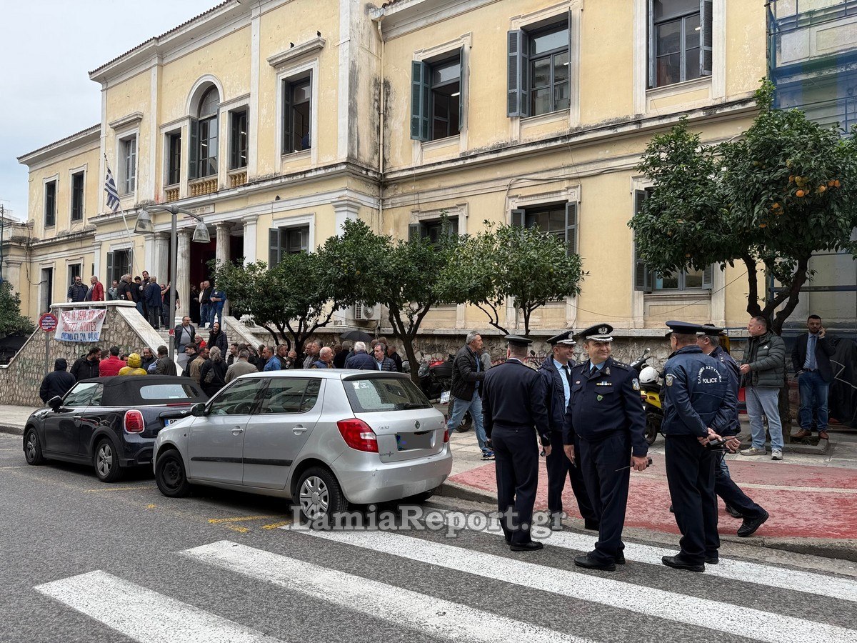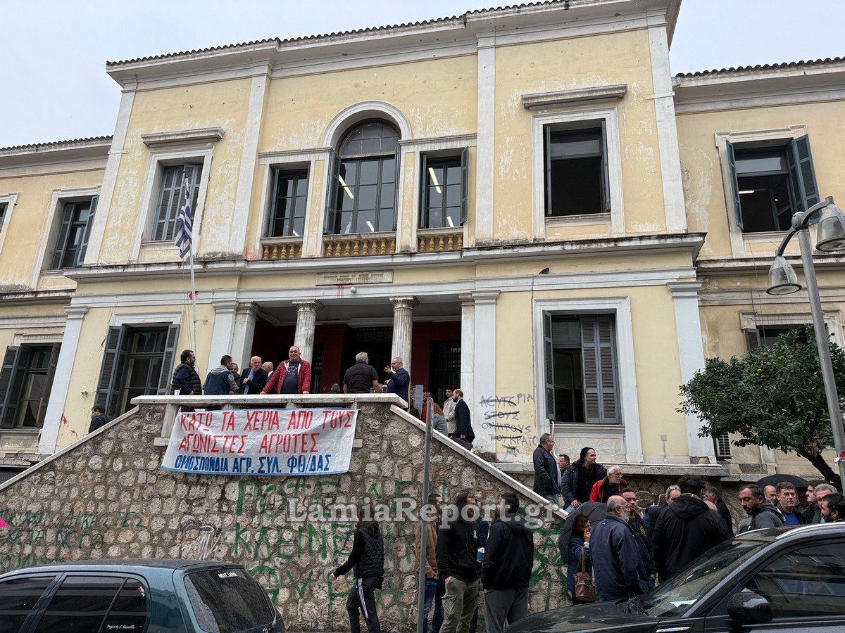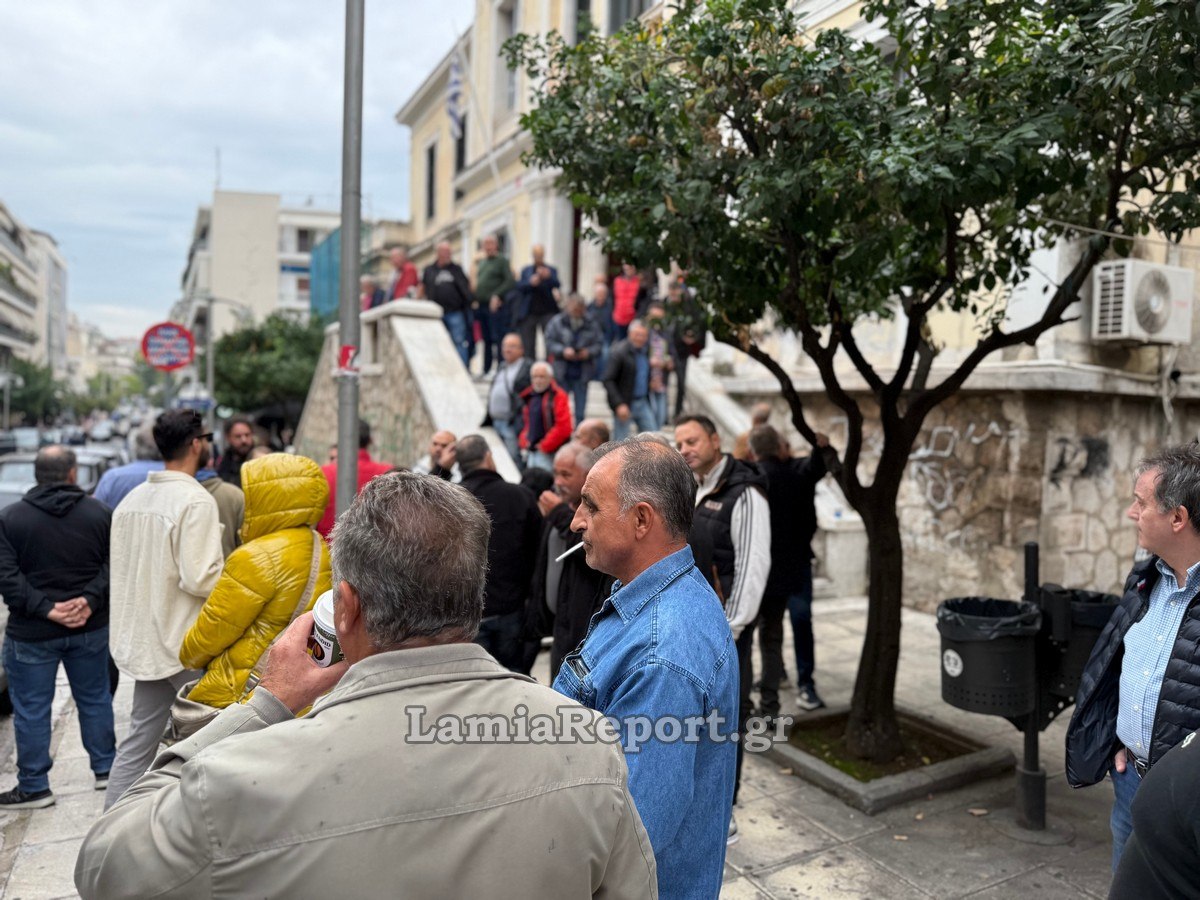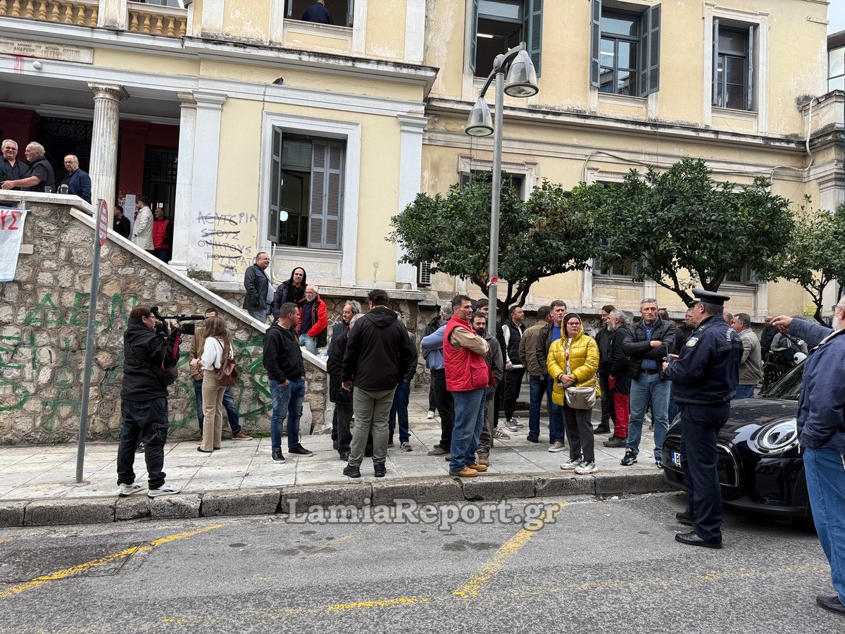 Εκεί υπήρχε συγκεντρωμένο πλήθος από το Εργατικό Κέντρο Λαμίας και άλλα σωματεία που διαμαρτύρονται για την ποινικοποίηση των κινητοποιήσεων των ανθρώπων του πρωτογενούς τομέα.