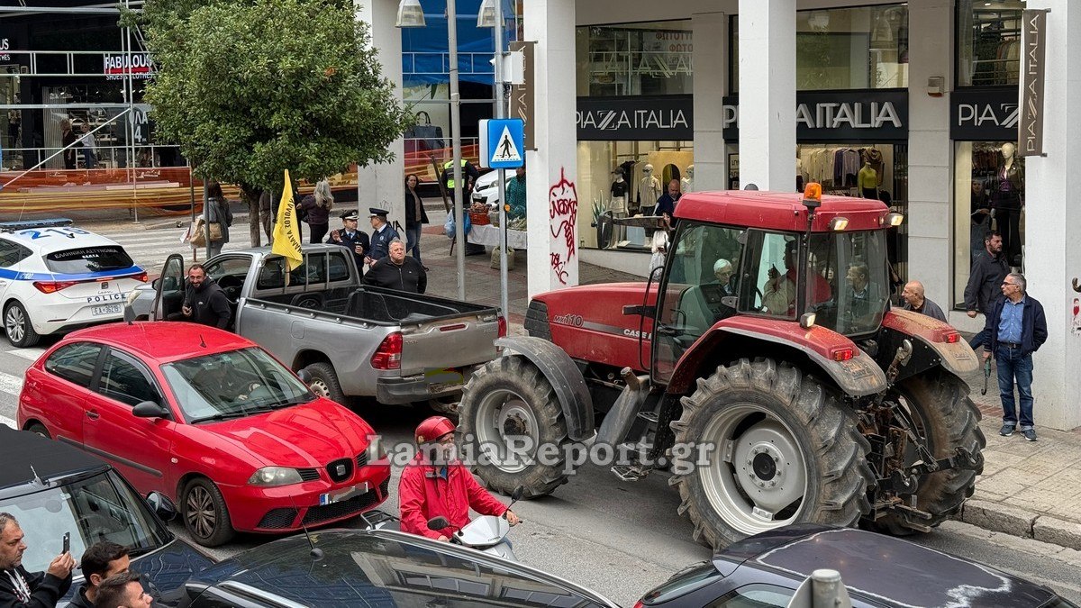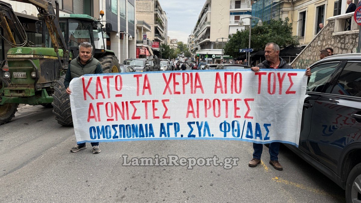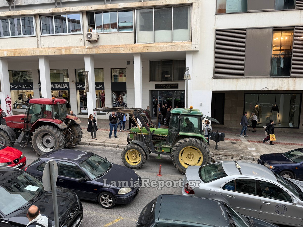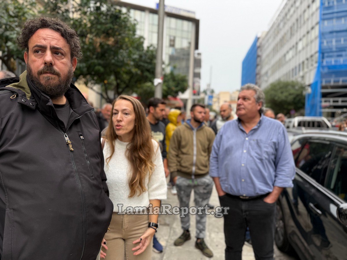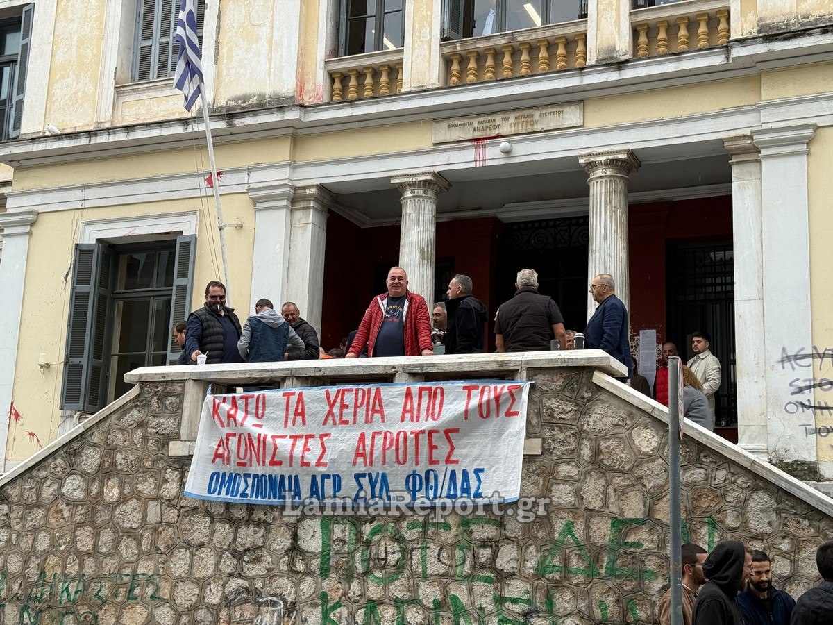Εκεί υπήρχε συγκεντρωμένο πλήθος από το Εργατικό Κέντρο Λαμίας και άλλα σωματεία που διαμαρτύρονται για την ποινικοποίηση των κινητοποιήσεων των ανθρώπων του πρωτογενούς τομέα.