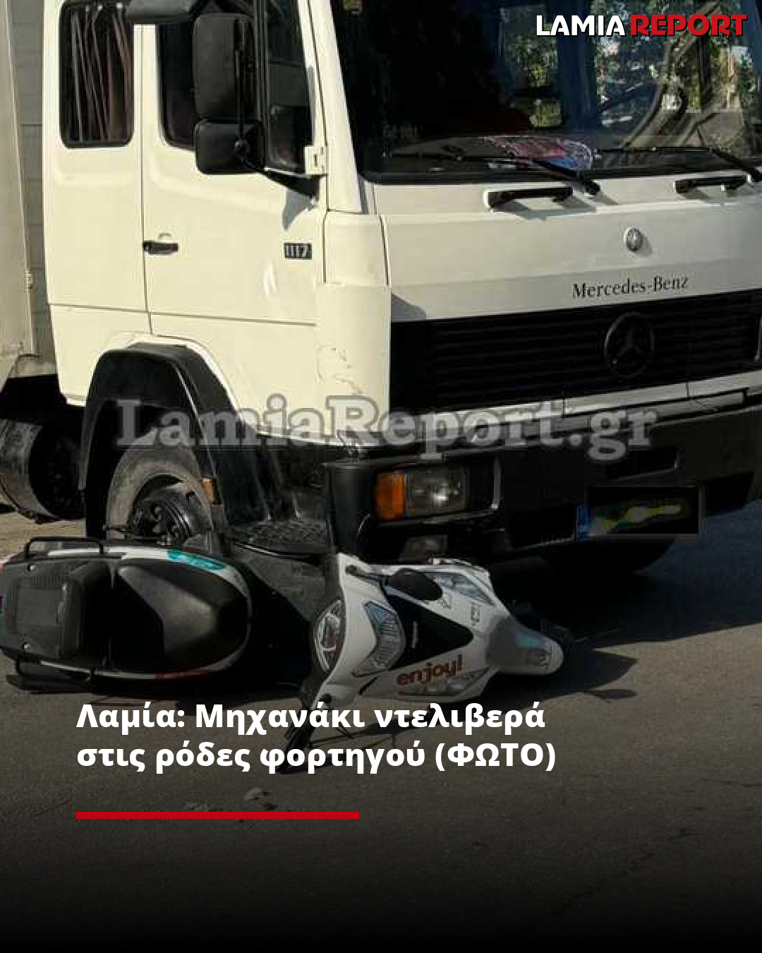 Λαμία: Μηχανάκι ντελιβερά στις ρόδες φορτηγού (ΦΩΤΟ)