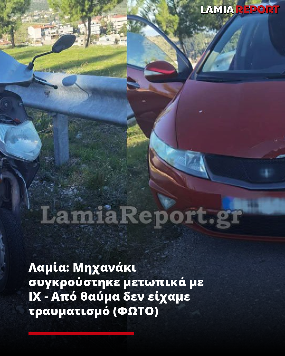 Λαμία: Μηχανάκι συγκρούστηκε μετωπικά με ΙΧ - Από θαύμα δεν είχαμε τραυματισμό (ΦΩΤΟ)