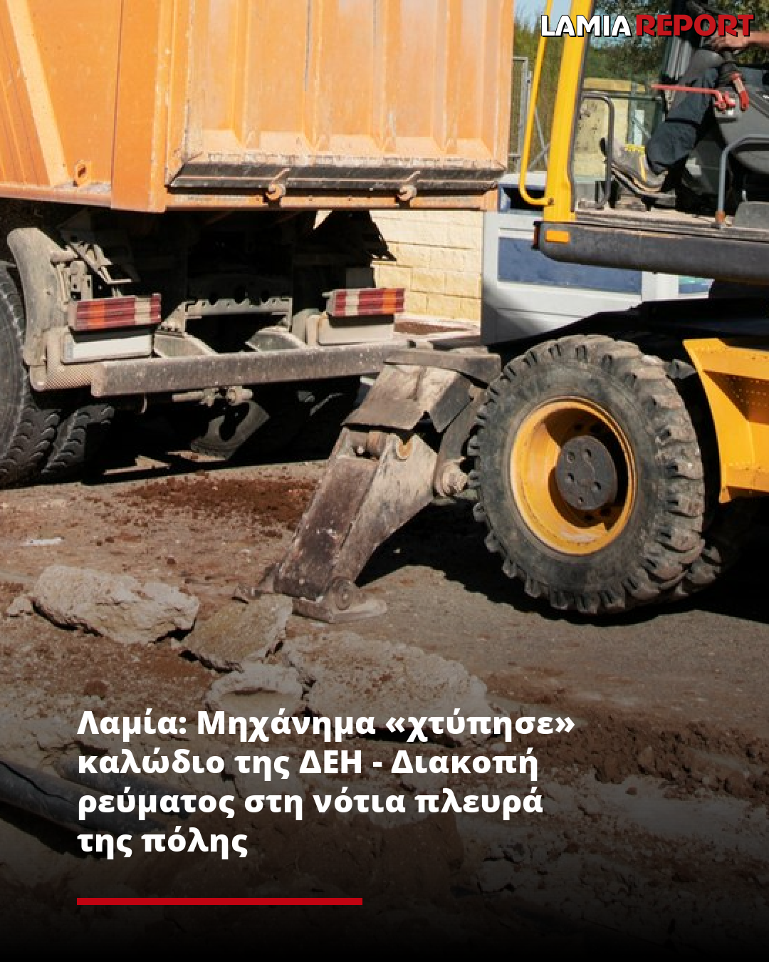 Λαμία: Μηχάνημα «χτύπησε» καλώδιο της ΔΕΗ - Διακοπή ρεύματος στη νότια πλευρά της πόλης