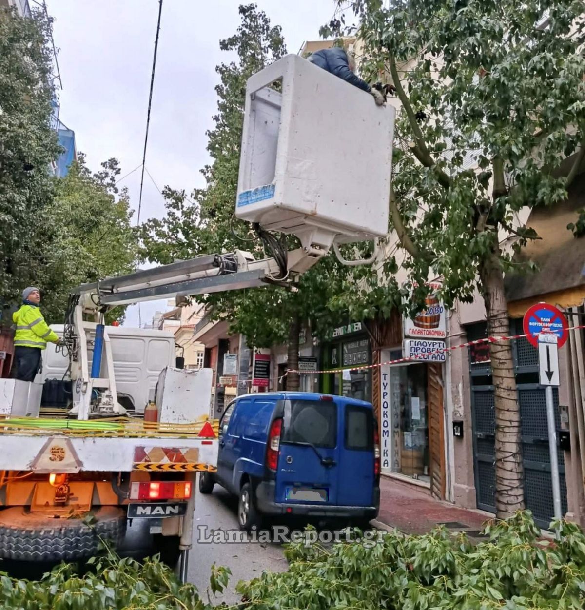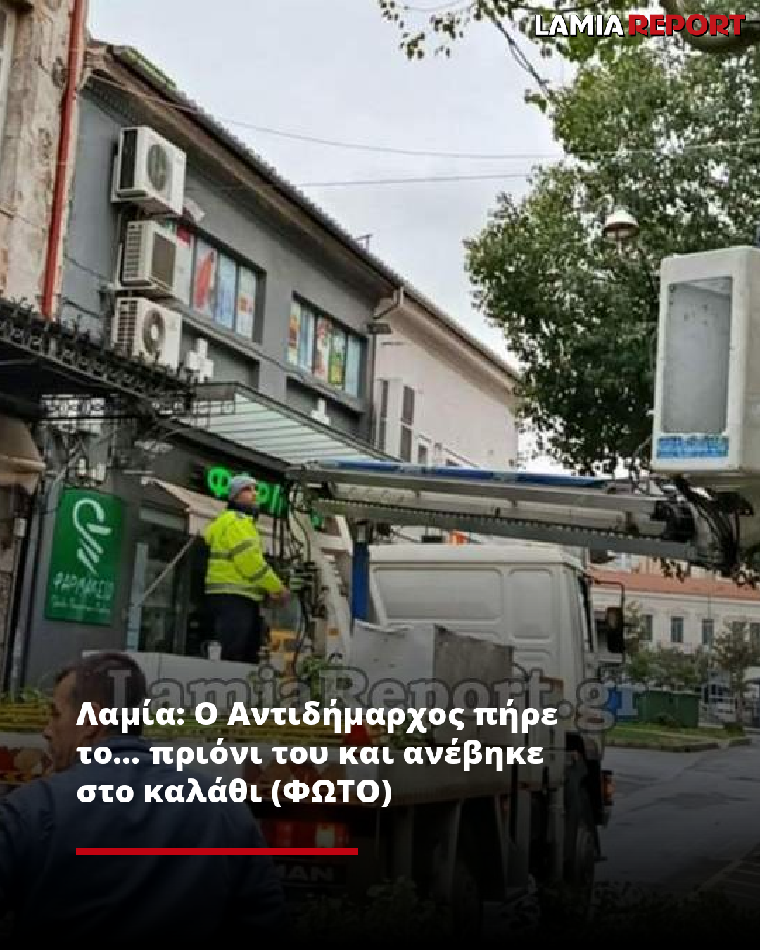 Μπορεί στη Λαμία να έχουμε συνηθίσει την συγκεκριμένη εικόνα, με τον Αντιδήμαρχο να είναι πάνω στο καλάθι και να κόβει αλλά όπως και να το κάνουμε δεν βλέπεις κάθε μέρα αιρετούς να είναι πρώτοι στις χειρωνακτικές εργασίες και μάλιστα Κυριακάτικα!