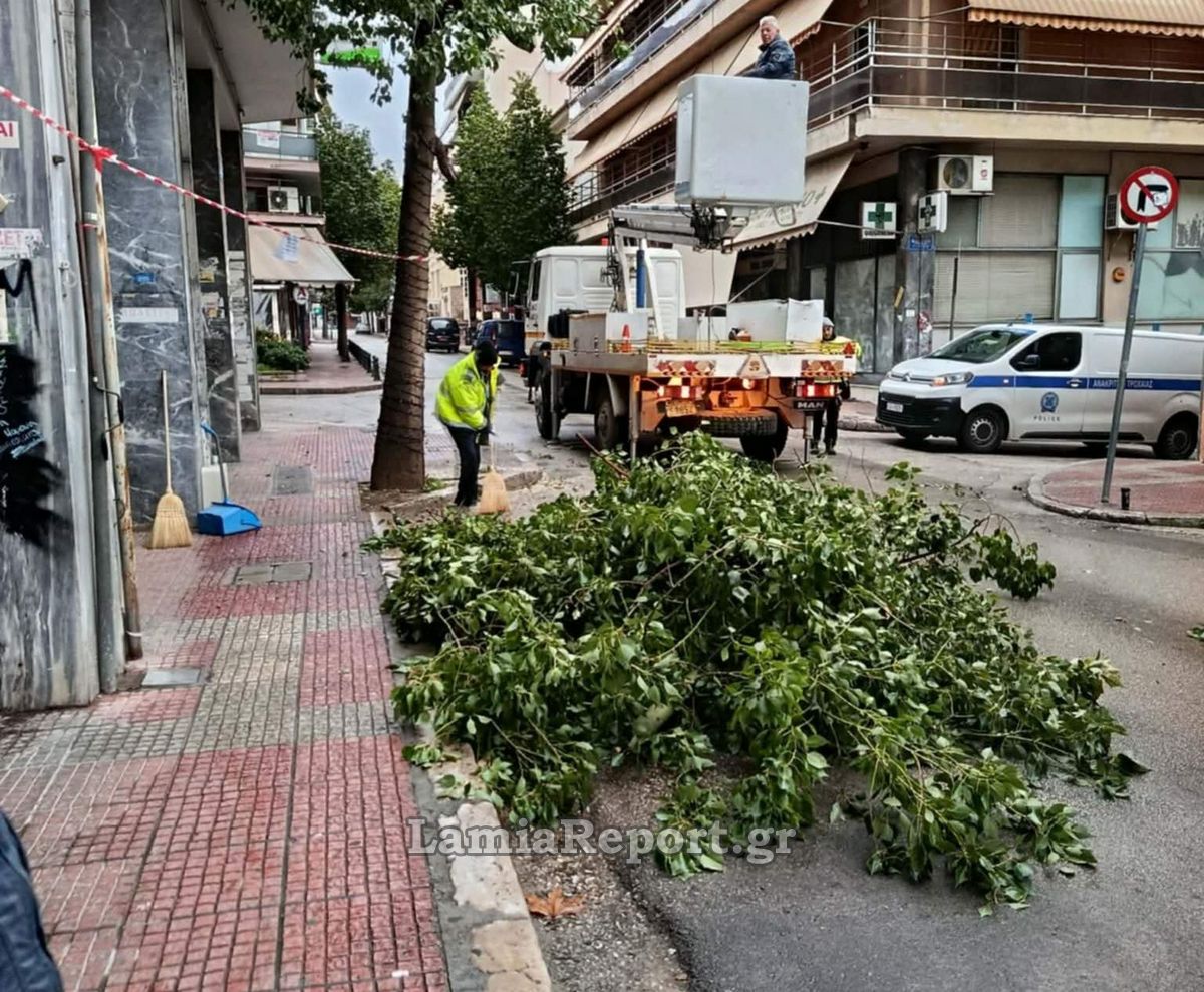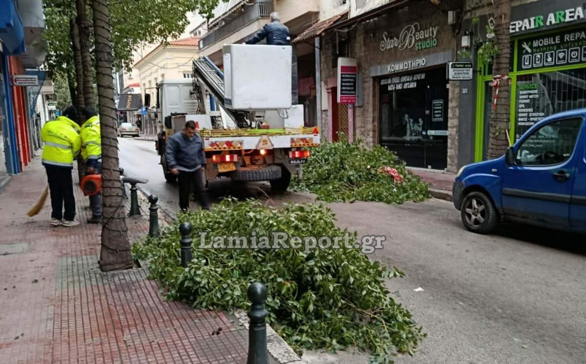 Επιχείρηση δέντρα και μάλιστα Κυριακάτικα για την Υπηρεσία Πρασίνου του Δήμου Λαμιέων, που κλάδεψε, κόντυνε και απομάκρυνε πολλά κλαδιά από τα πανύψηλα - υποτίθεται διακοσμητικά - δέντρα της οδού Σατωβριάνδου.