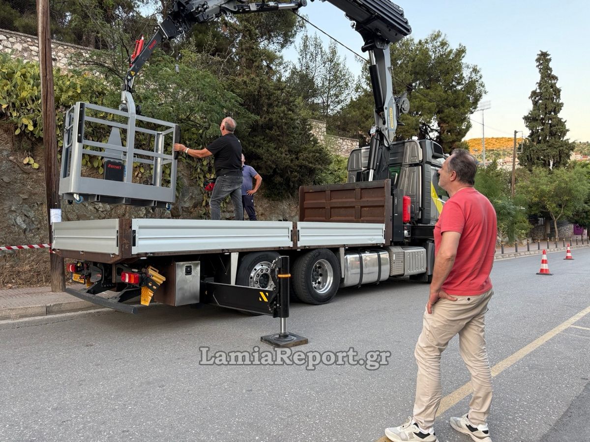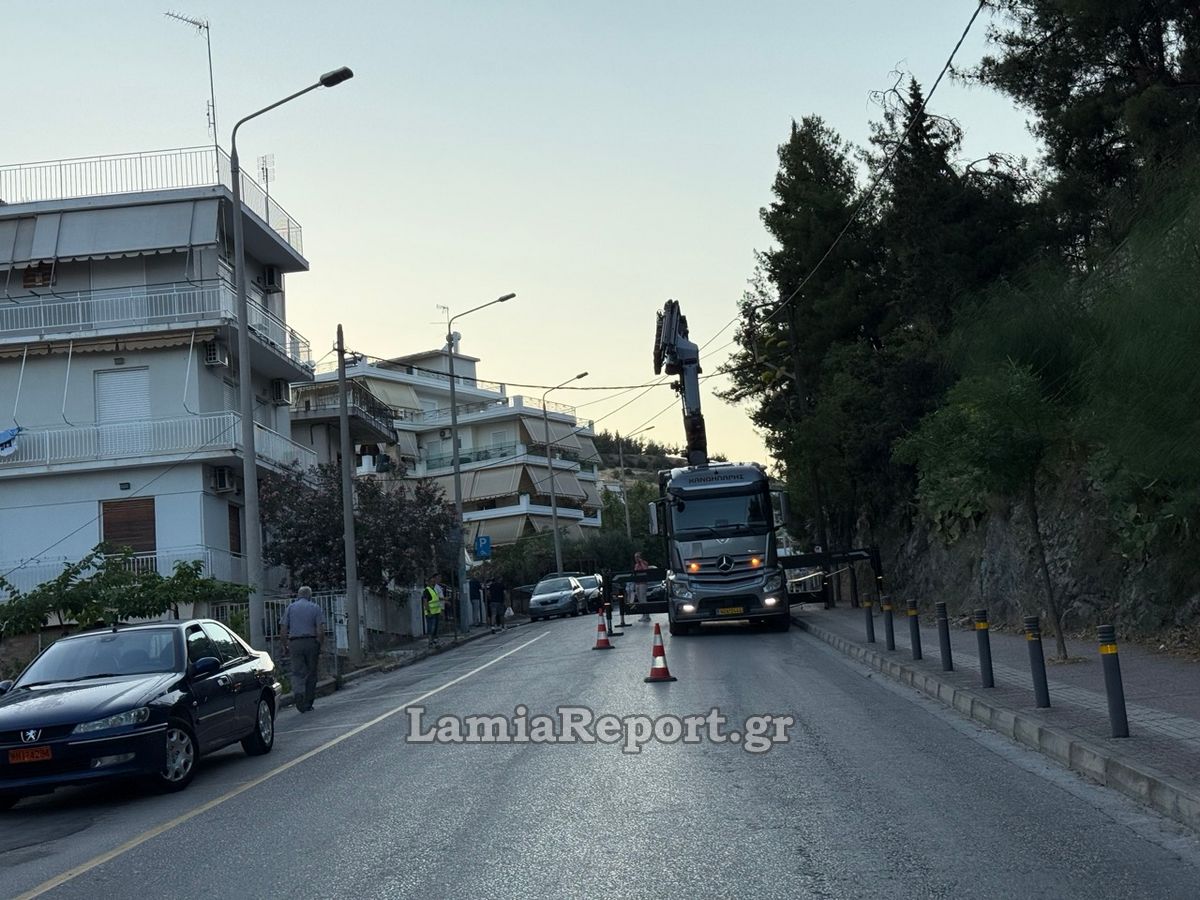 Συναγερμός σήμανε αργά το απόγευμα στην οδό Φλέμινγκ μπροστά από το Δημαρχείο Λαμίας, όταν ένα μεγάλο δέντρο κόπηκε από το δυνατό αέρα και κρεμόνταν σε βάρος άλλου μη σταθερού δέντρου!