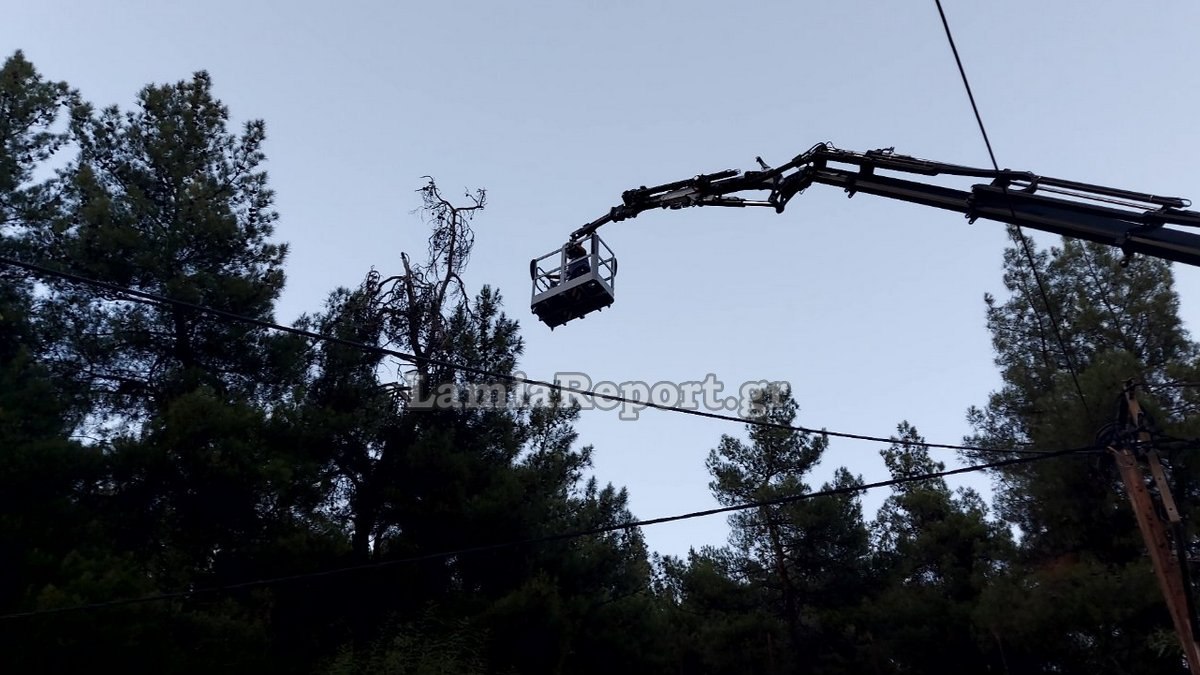 Τελικά όπως μας ενημέρωσε ο κ. Κερπινιώτης χρειάστηκε να απομακρυνθούν τόσο το σπασμένο δέντρο όσο και το έτερο δέντρο που έπαιξε για λίγη ώρα το ρόλο του εμποδίου, αφού κι εκείνο είχε γείρει επικίνδυνα. Επιπλέον απομακρύνθηκαν τα μισοσπασμένα κλαδιά διπλανού δέντρου που με τον αέρα πλησίασαν επικίνδυνα τα καλώδια, καθώς και ένα ακόμη μικρό και σχεδόν σάπιο δέντρο που υπέστη κι αυτό ζημιά από τον αέρα και την υποχώρηση των πιο μεγάλων δέντρων.
