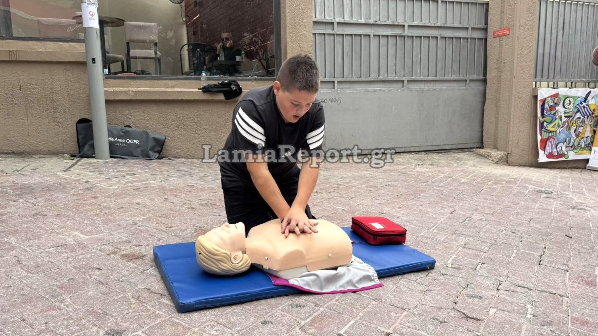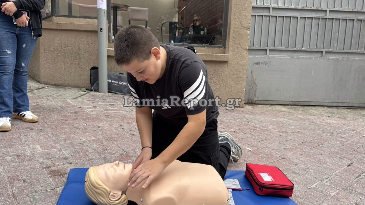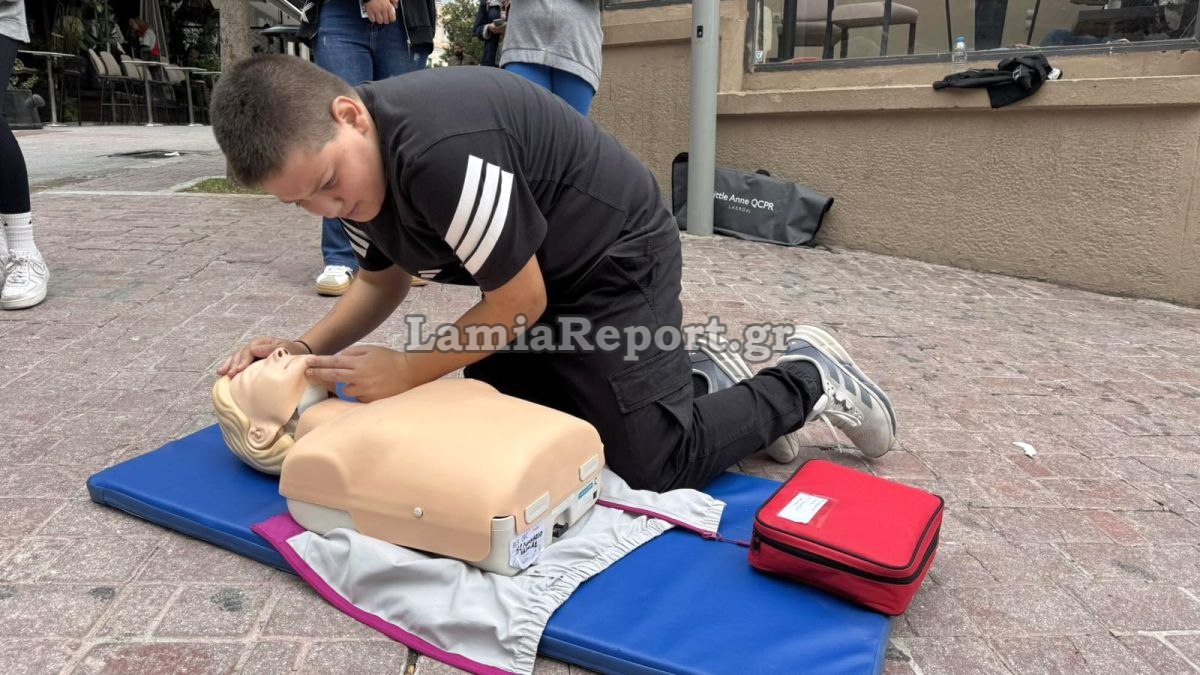 Στην συνέχεια της σημερινής εκδήλωσης, οι μαθητές του 5ου Γυμνασίου Λαμίας έδειξαν σε περαστικούς τεχνικές ΚΑΡΠΑ, αλλά και το πως χρησιμοποιείται ο απινιδωτής!