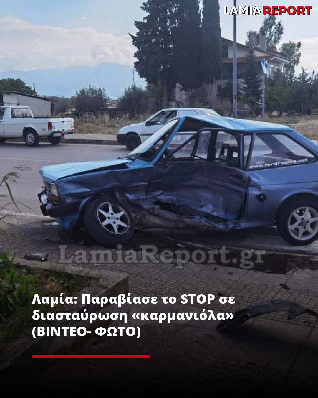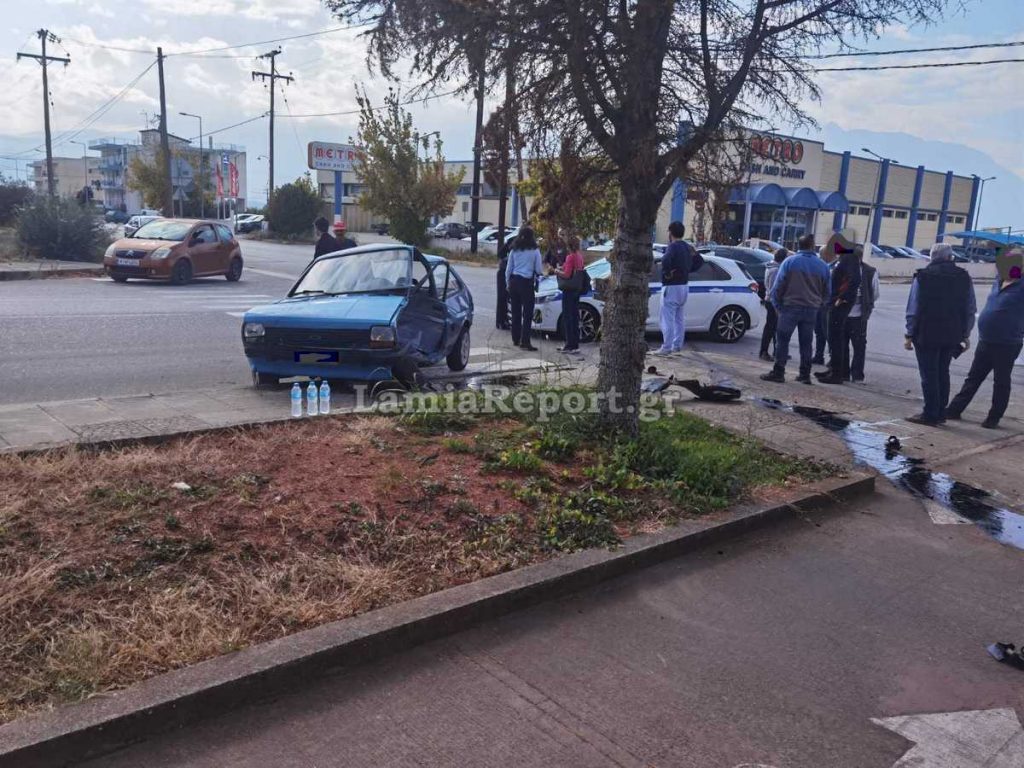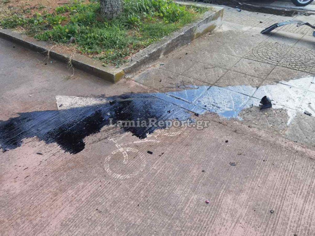 Το χτύπημα ήταν πολύ γερό, καθώς σχεδόν το μπλε όχημα καταστράφηκε, όπως φαίνεται στις εικόνες του LamiaReport. Ο οδηγός του, βρέθηκε στη θέση του συνοδηγού, όπου και ο γιος του.