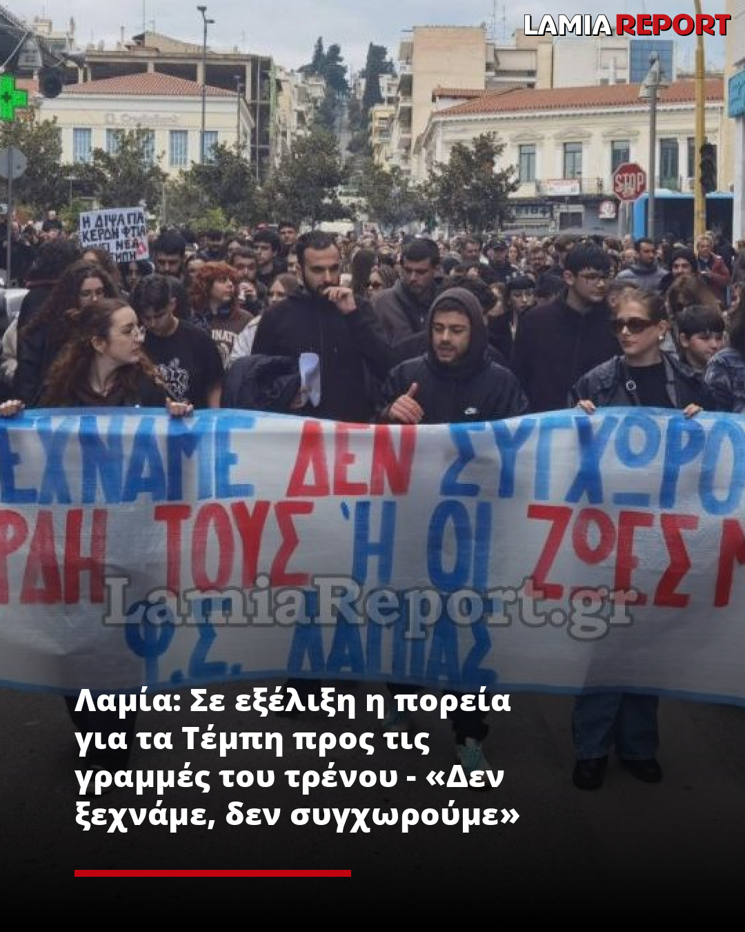 Αυτή την ώρα είναι σε εξέλιξη η πορεία διαμαρτυρίας που ξεκίνησε από την πλατεία Πάρκου και θα καταλήξει στη νότια πλευρά της πόλης στις γραμμές του τρένου και τον σταθμό του ΟΣΕ στη Λαμία.