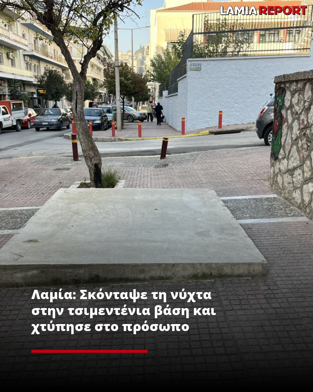 Λαμία: Σκόνταψε τη νύχτα στην τσιμεντένια βάση και χτύπησε στο πρόσωπο