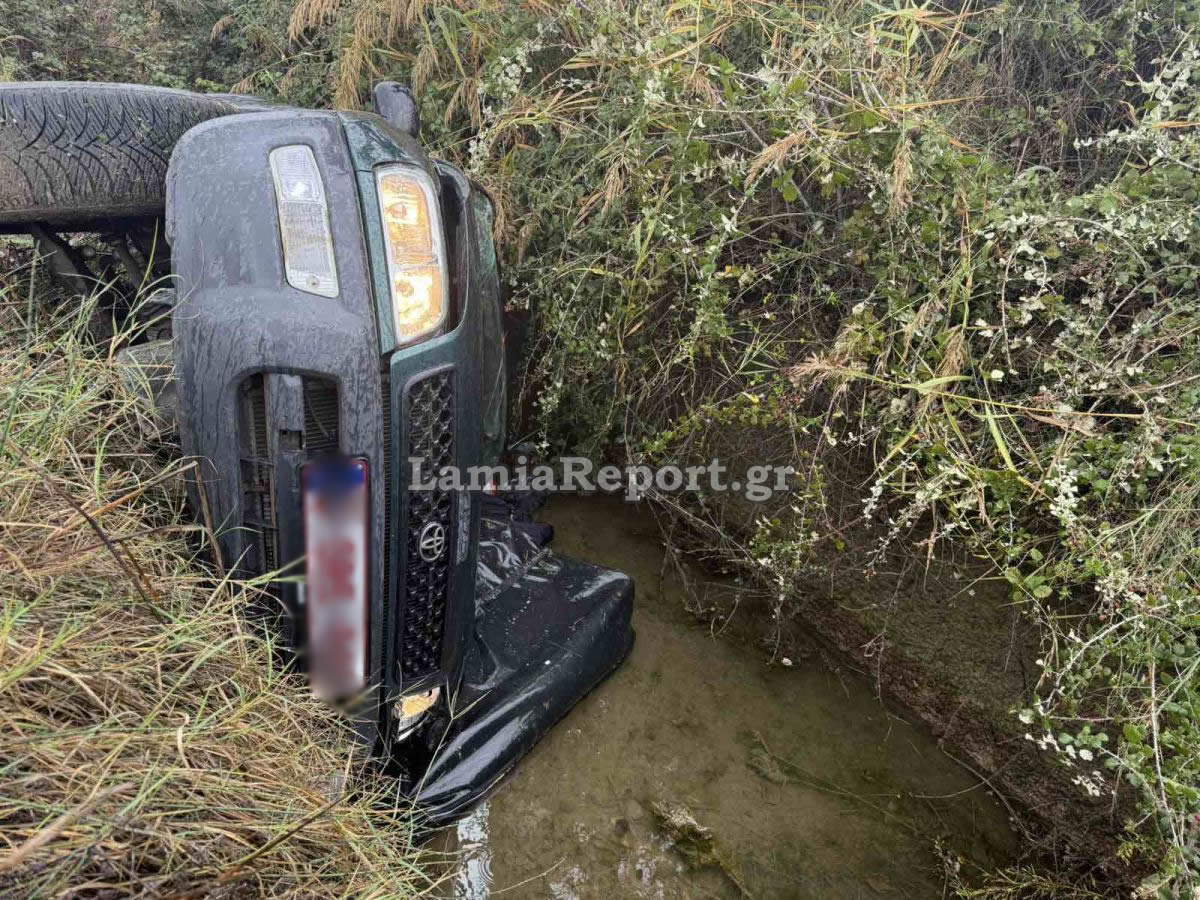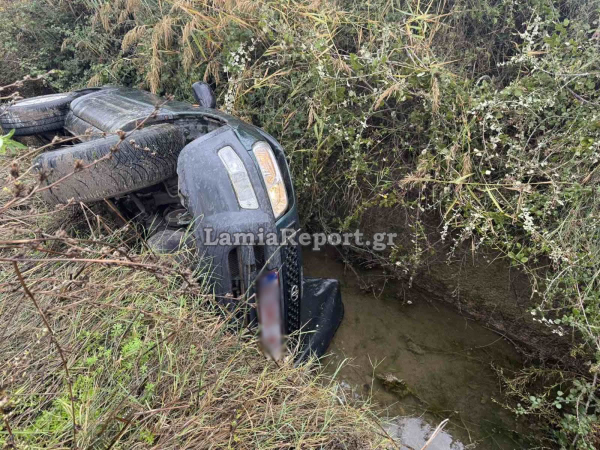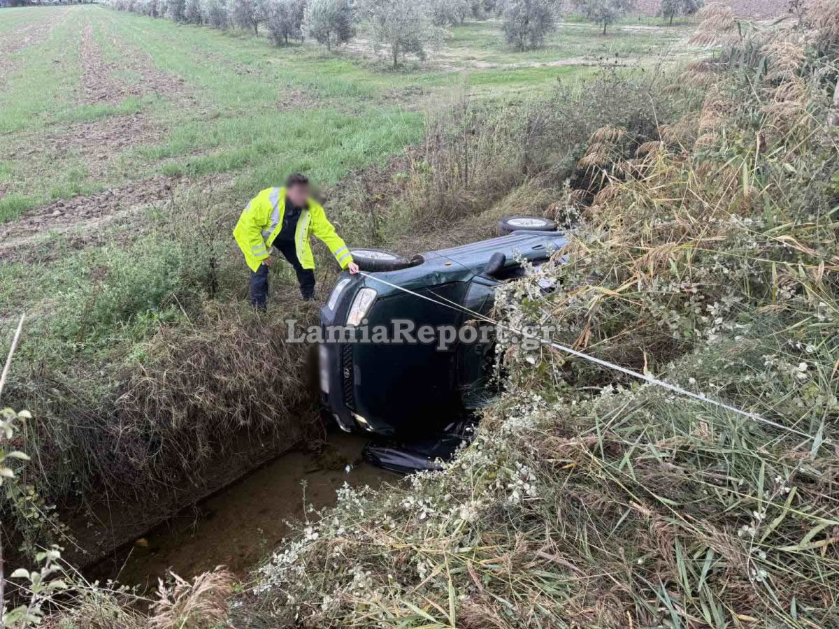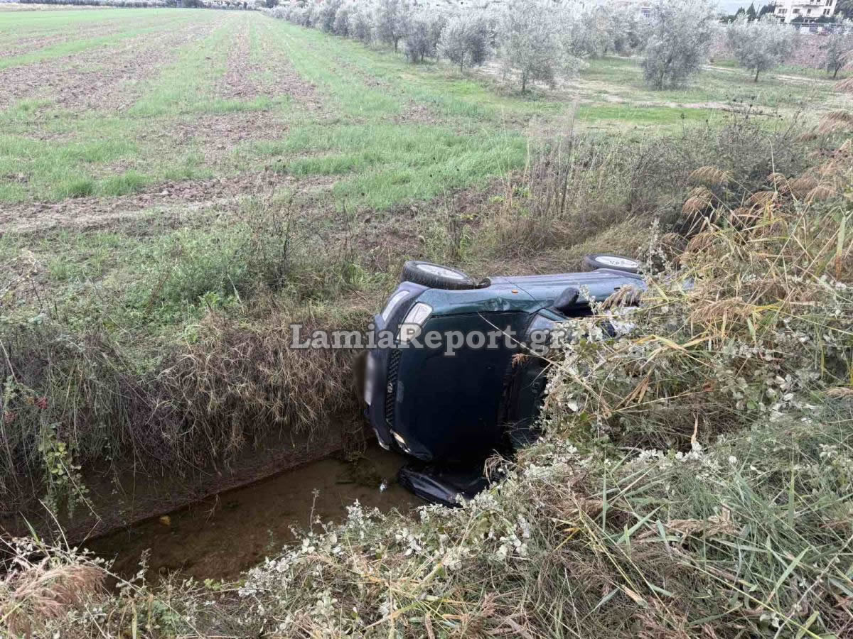 Στο μικρό αυτοκίνητο επέβαινε και ο σκύλος της. Η γυναίκα διακομίστηκε με ασθενοφόρο του ΕΚΑΒ στο Νοσοκομείο Λαμίας.