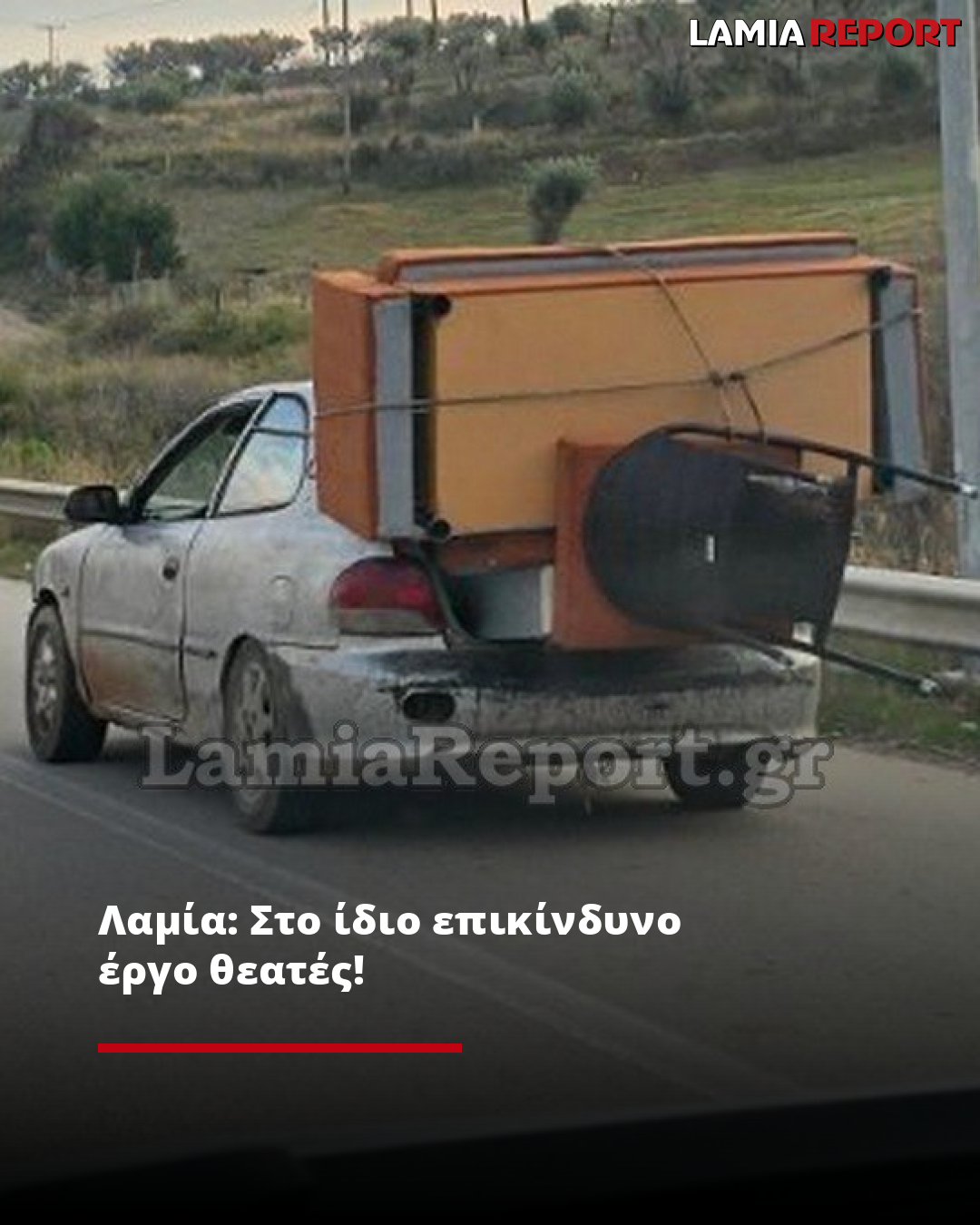 Μόνο που αυτή τη φορά η Τροχαία Λαμίας ήταν εκεί με δύο περιπολικά να συνοδεύουν με πολύ χαμηλές ταχύτητες το επικίνδυνα φορτωμένο όχημα στο αστυνομικό μέγαρο.