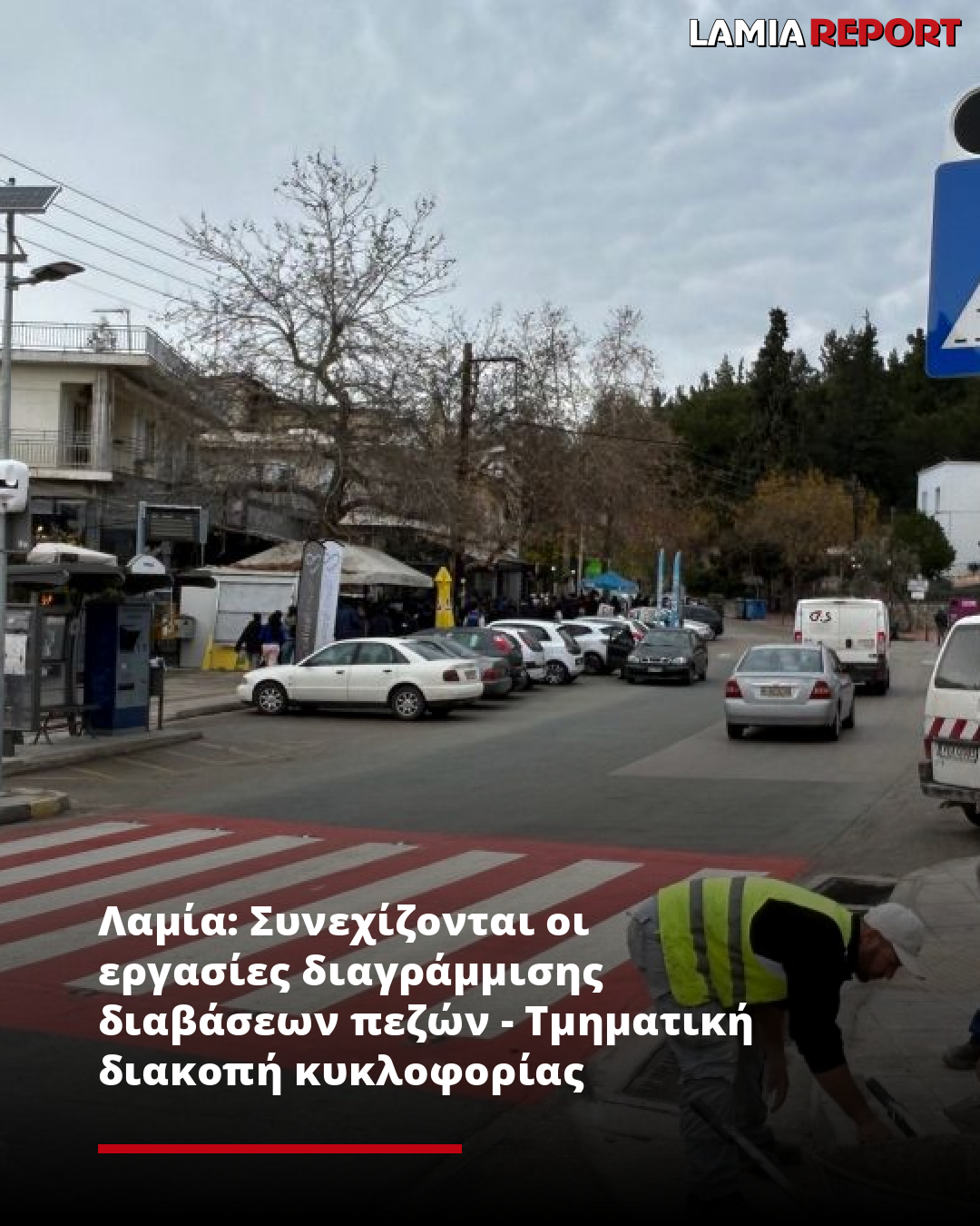 Λαμία: Συνεχίζονται οι εργασίες διαγράμμισης διαβάσεων πεζών - Τμηματική διακοπή κυκλοφορίας