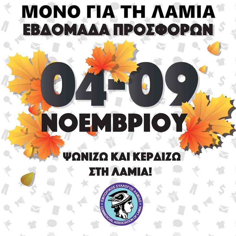 Στα πλαίσια της εβδομάδας φθινοπωρινών προσφορών, ο Εμπορικός Σύλλογος Λαμίας διοργανώνει σήμερα Παρασκευή δρώμενα στο εμπορικό κέντρο.